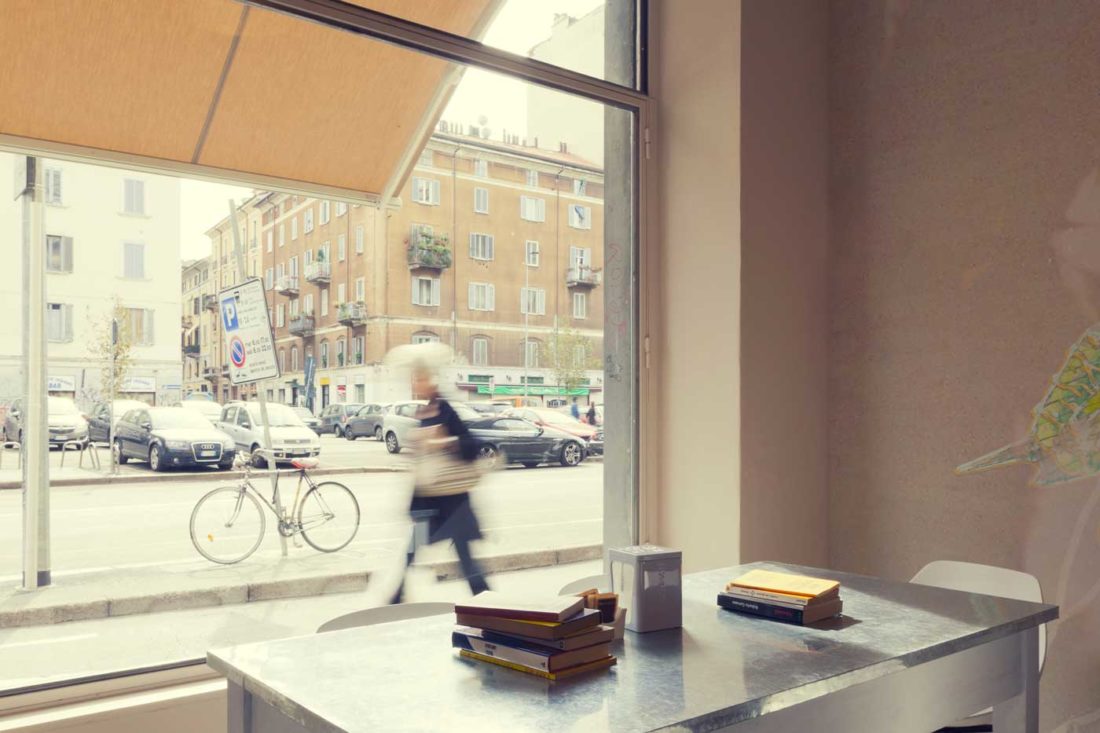 Las mesas sociales y de recuperación pasan por alto las ventanas preexistentes en las cuales se colocan libros y cómics para intercambiar entre los clientes. Todo para crear un ambiente en el que el cliente pueda sentirse como en casa, seguido por el personal con el afecto que una persona de familia se reserva