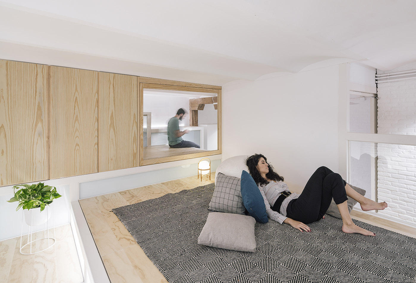 El proyecto, mucho más cercano al proceso de construcción de una vivienda unifamiliar que a una rehabilitación interna, es llevado a cabo por Zooco Studio, que genera diez estructuras horizontales de diferentes alturas que albergan diferentes funciones