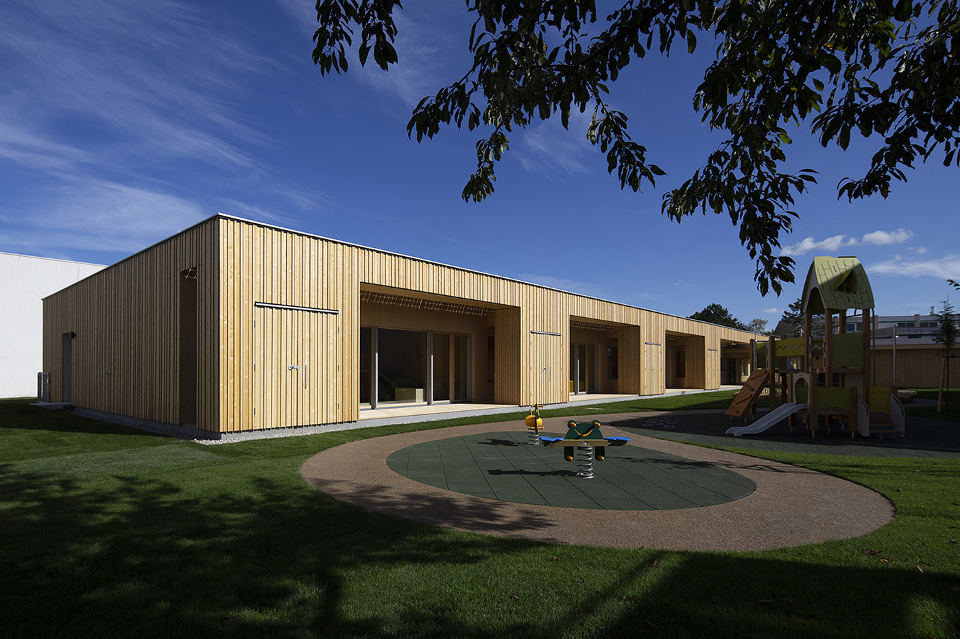 El estudio de arquitectura Jury Troy Architects ha construido una guardería en Austria con una estructura de abeto rojo local y de concepto energético basado en los estándares de casa pasiva