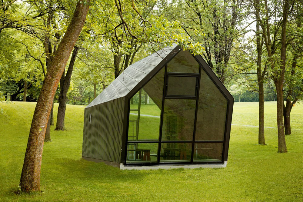 Cada quiosco se apoya en una angulación diferente, como si fuera impulsado por el viento. El primer kiosco está inclinado a 10 grados, diseñado para viajes de clase tanto en verano como en invierno. Con espacio suficiente para acomodar hasta 30 personas, las posibilidades para las actividades son variadas. El segundo kiosco, inclinado a 20 grados, alberga herramientas y equipos para servicios de parques, así como una estación de primeros auxilios. Mientras que el tercero, con su pendiente de 30 grados, es el hogar de la taquilla, además del almacenamiento de equipos recreativos