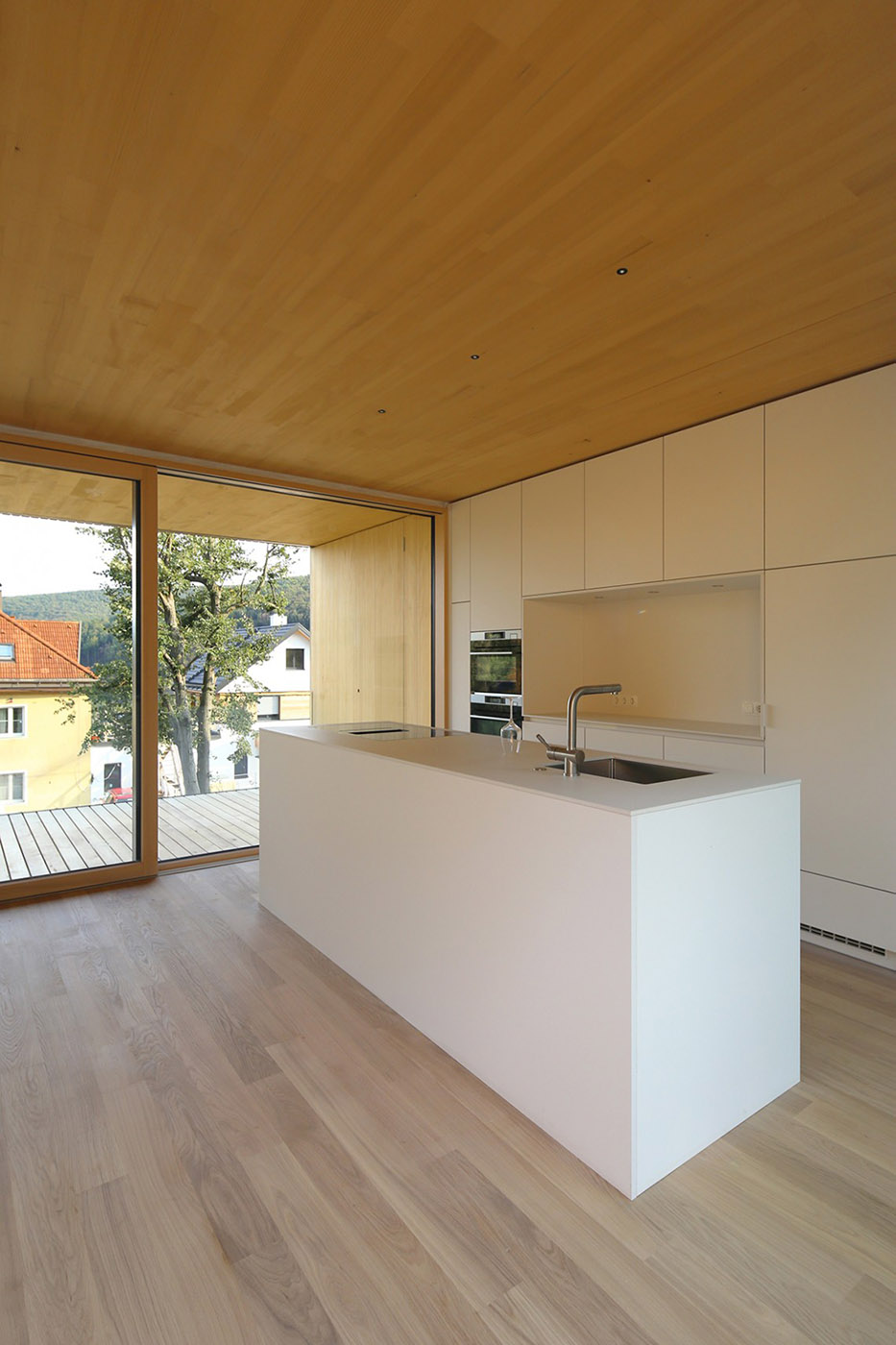 El diseño de esta villa en las cercanías de Viena presta gran atención a la sostenibilidad de la planta y de los materiales, utilizando el material sostenible por excelencia, la madera. El resultado es un espacio cálido y acogedor que enmarca el paisaje circundante desde el interior