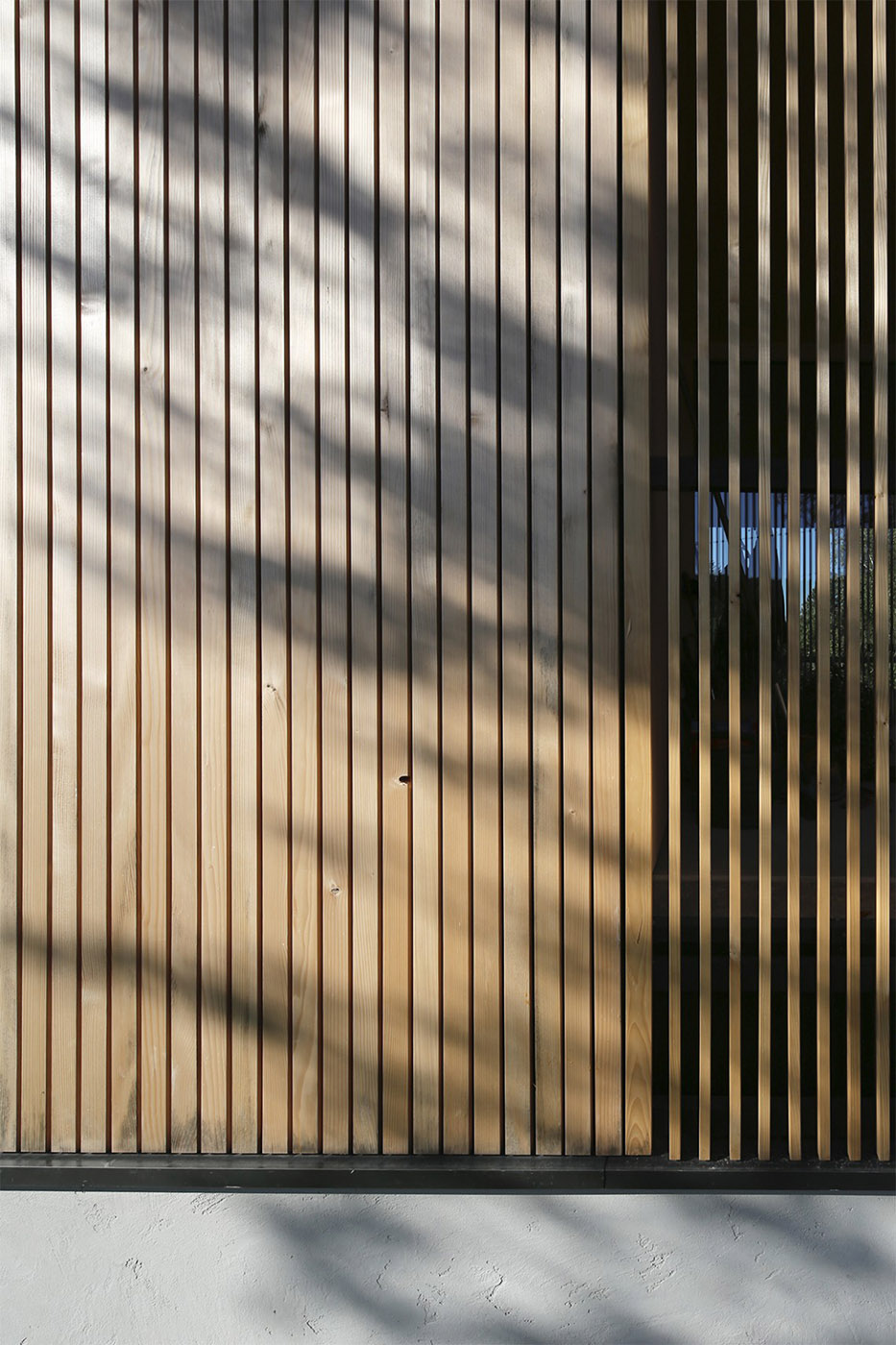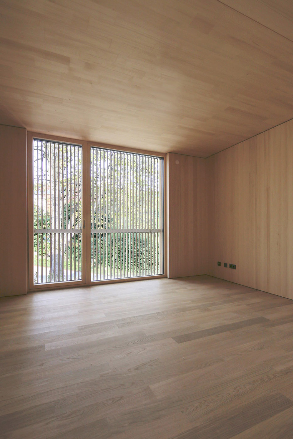 La propiedad se sitúa en la ladera sur sobre el pueblo de Purkersdorf y ofrece una maravillosa vista de los bosques de Viena. El piso superior es de madera y está completamente cubierto de abeto blanco. El tejido de láminas que cubre la fachada se ensancha en las superficies acristaladas creando hermosos juegos de luz en las horas nocturnas. Un gran balcón con un parapeto de cristal se abre al jardín enmarcando el paisaje como si fuese un cuadro