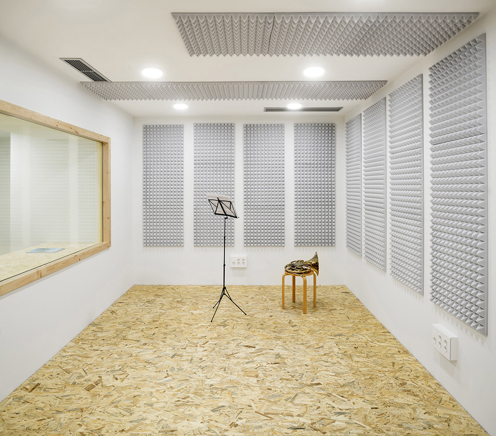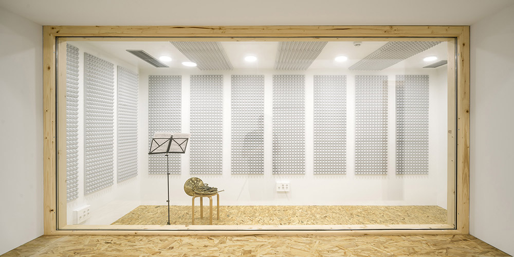 Al espacio principal se le flanquea otro más pequeño, que requiere de aislamiento térmico y acústico y está destinado a actividades como talleres y sesiones de formación