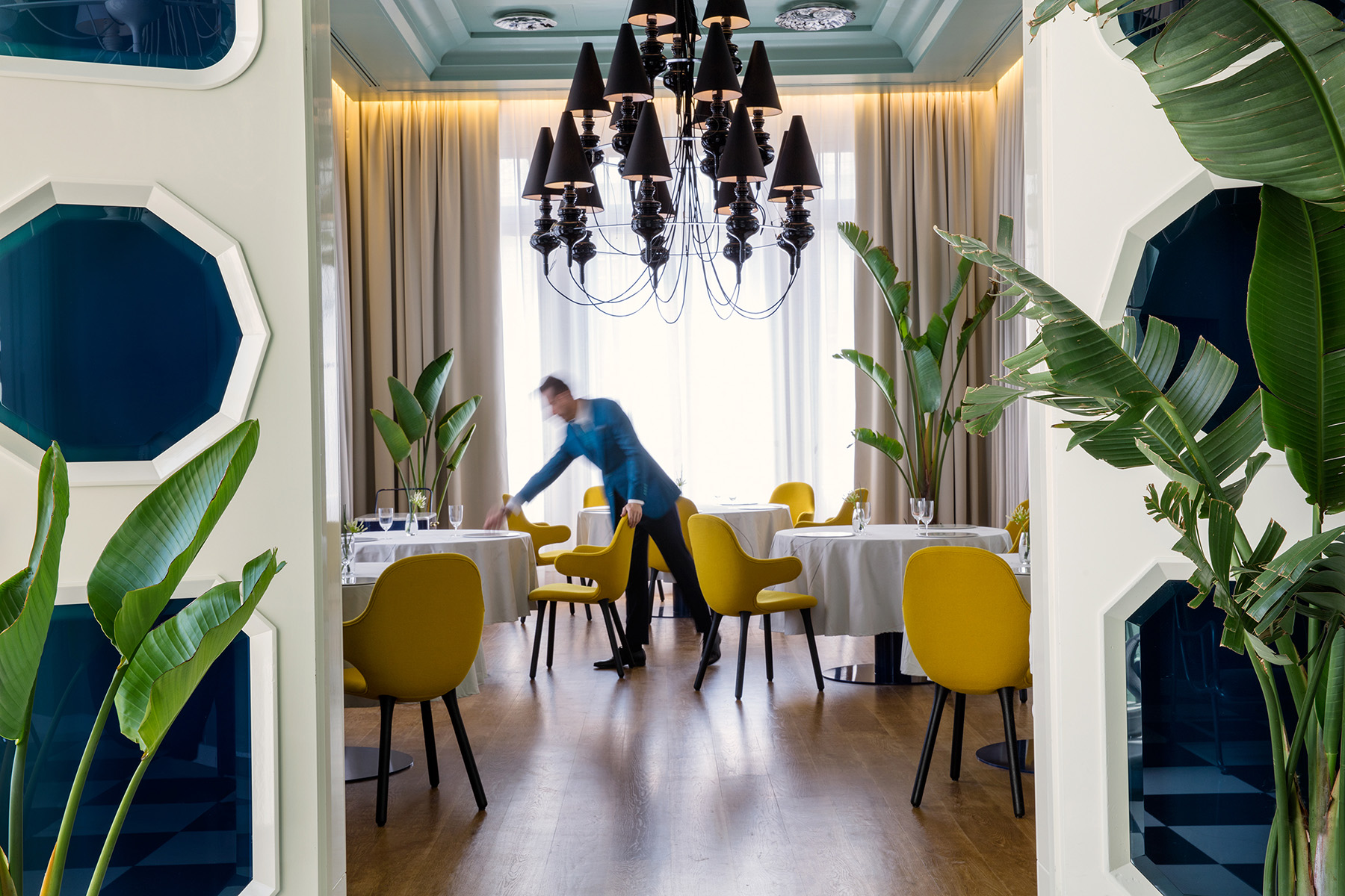 Dieci anni dopo aver progettato "La Terraza del Casino", Jaime Hayon aggiorna lo spazio con una nuova prospettiva audace, incorporando verdi morbidi e profondi blu, con elementi organici dove il lato commensale viene enfatizzato con sorprendenti svolte