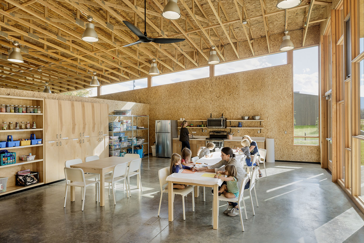 Creando una variedad de espacios en la frontera entre interior y exterior, el diseño ofrece varios niveles de conexión con el paisaje y diferentes oportunidades tanto de soledad como de comunidad. El Bistro dispone de comedores interiores y exteriores con chimeneas para hacer acogedoras las mañanas de invierno y las noches de verano. Los acentuados voladizos proporcionan sombra en verano y calor en invierno, reduciendo el resplandor del intenso sol del desierto. El centro de actividades ofrece a los niños (y a los padres) un lugar para jugar con un interior inacabado que puede tomar forma gracias a los desordenados proyectos artísticos y las peleas de globos de agua de sus entretenidos usuarios