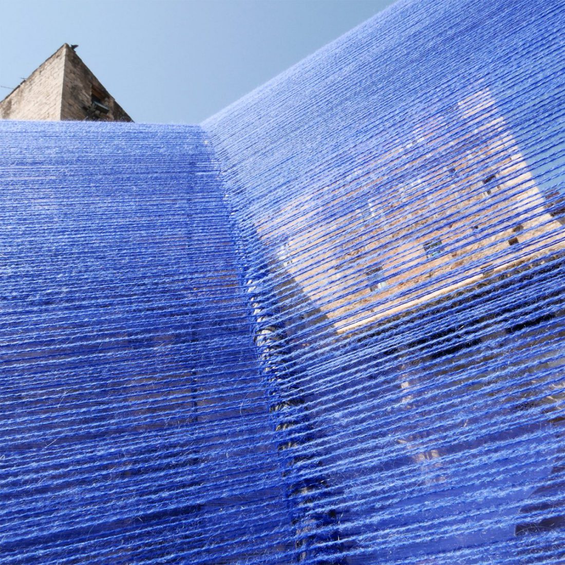 La arquitectura sagrada que la circunda se recuerda aquí en toda su dimensión sincrética. Los arcos de todos los orígenes están conectados entre sí por un hilado colorado que filtra la luz y las miradas.