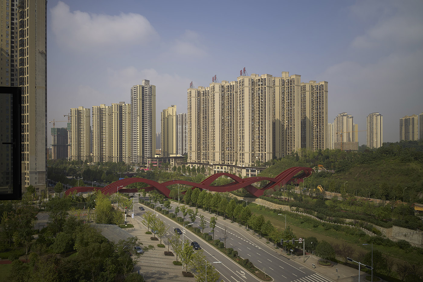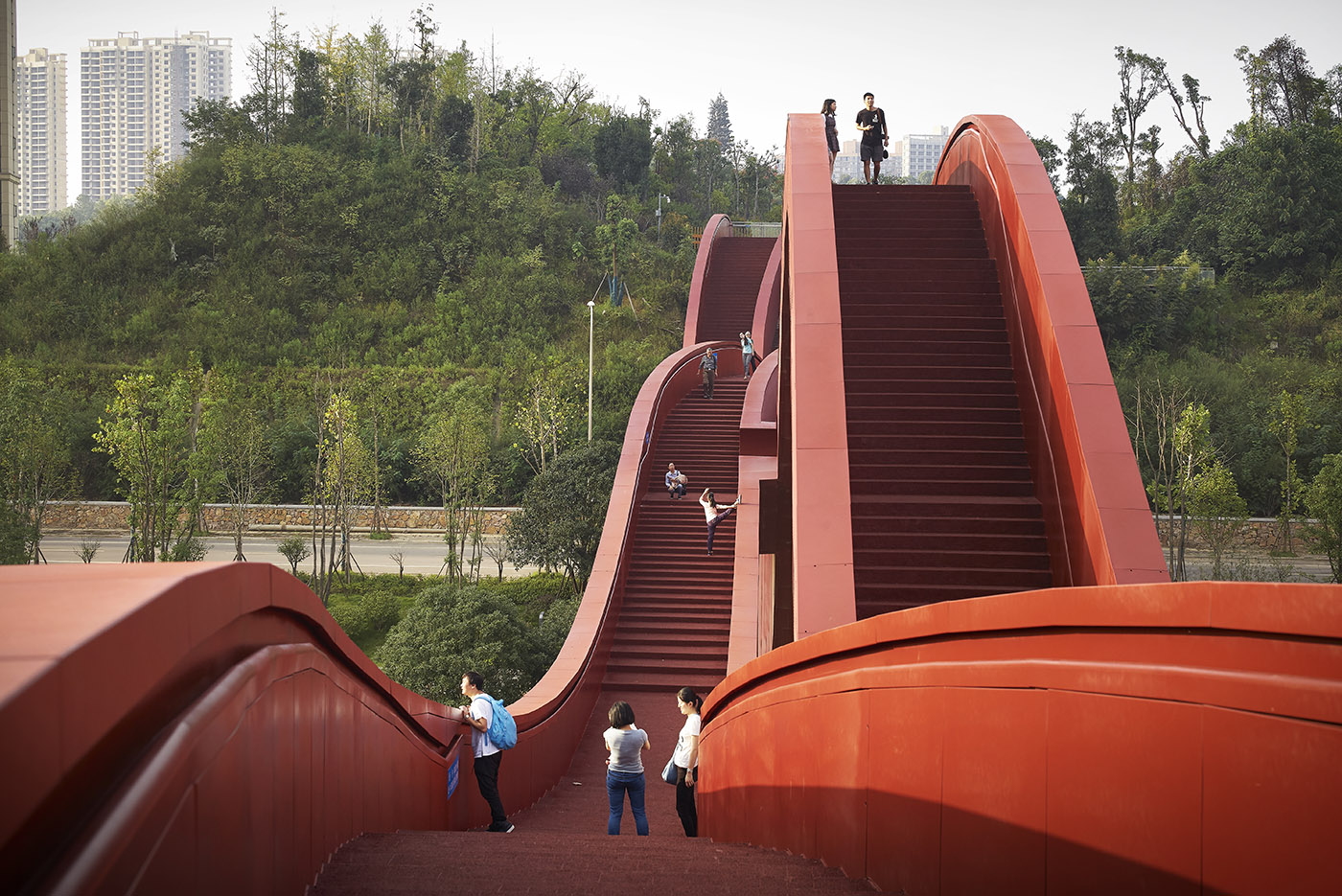 El nuevo puente peatonal de acero Lucky Knot, construido sobre el río Dragon King Harbour en el distrito de rápido crecimiento New Lake District, tiene una longitud de 185 metros y una altura de 24 metros y ya se ha convertido en un ícono: CNN lo ha seleccionado como uno de los puentes más espectaculares en diseño que rompen esquemas. Diseñado por Next Architects (equipo de Pechino), es uno de los proyectos de arquitectura urbana más icónicos en el país.