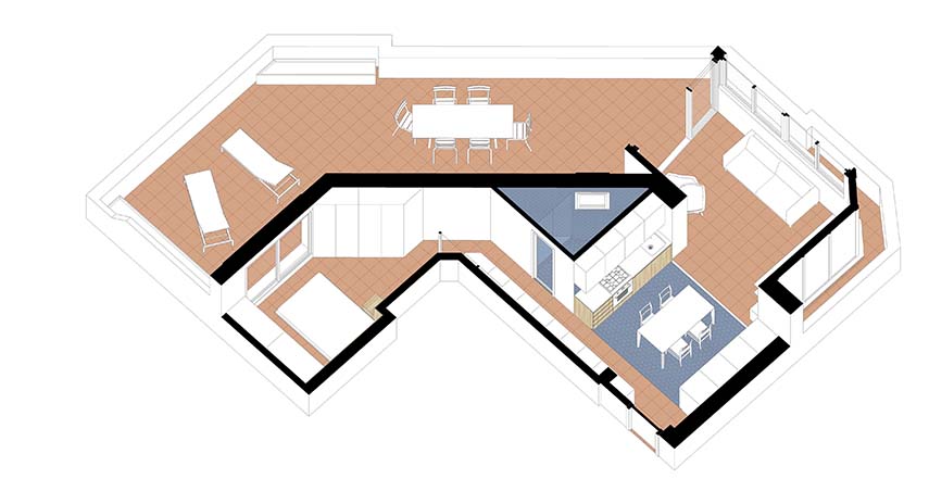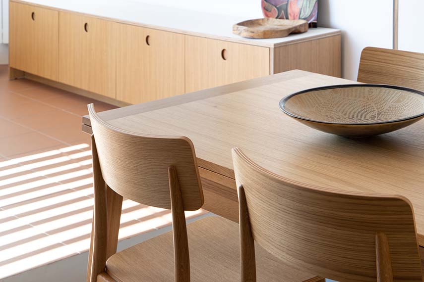 El estudio NOOK Architects en el proyecto FONT se encarga de la renovación de la casa de sus clientes siguiendo el principio de que no siempre cambiar es sinónimo de mejorar: la vivienda, por sí misma, ya satisfacía las necesidades de los clientes en cuanto a distribución; por lo tanto, los diseñadores intervienen con acciones específicas para mejorar la eficiencia energética, el confort acústico y térmico y la funcionalidad de los espacios existentes