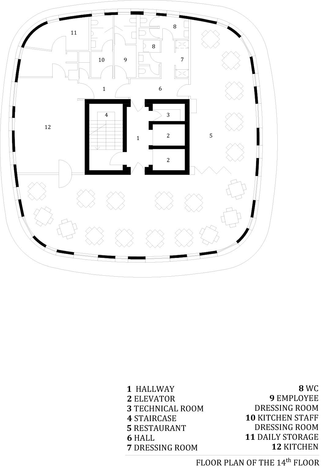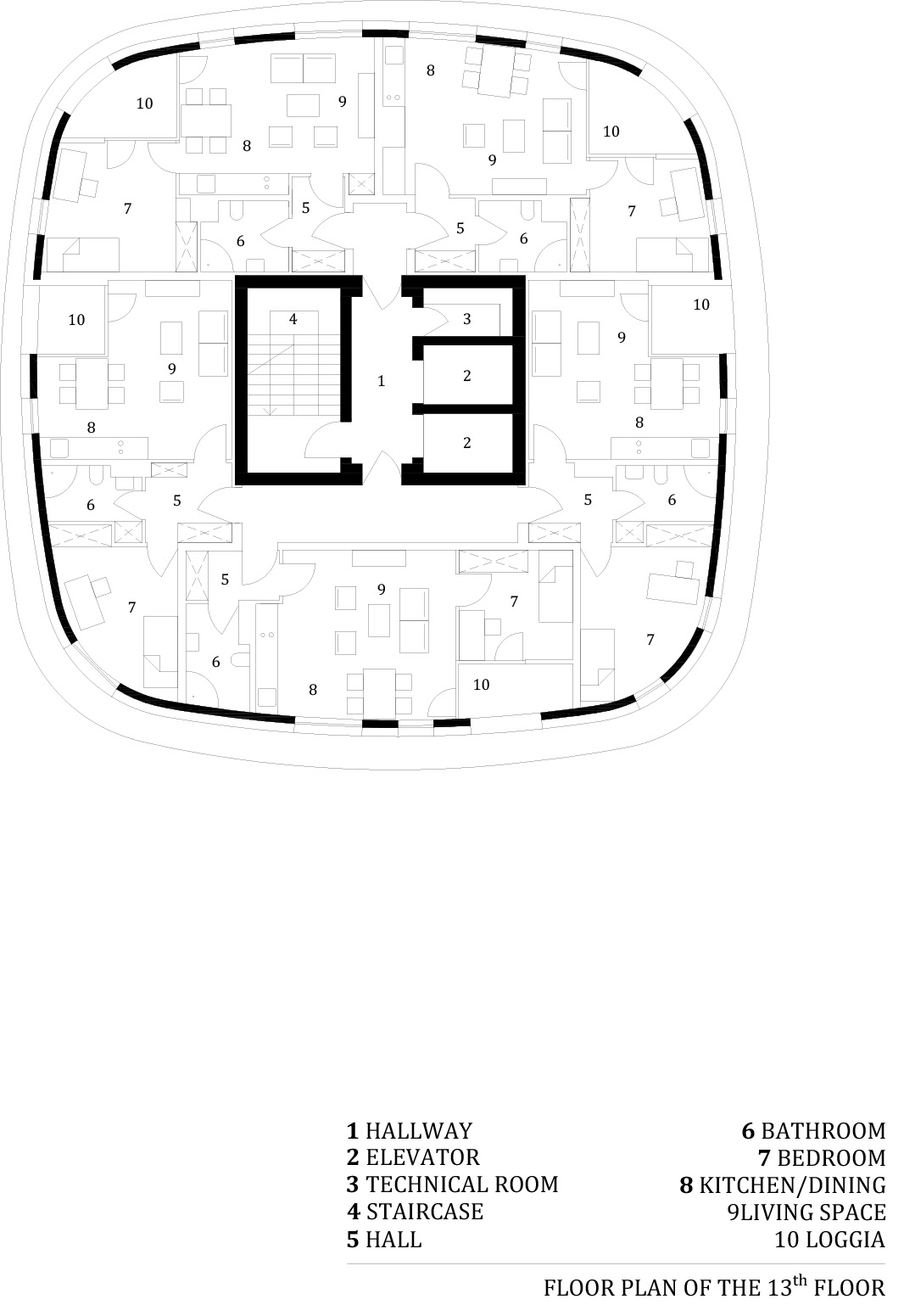 Diseñado por PROARH, MORpH alberga 7 estudios por planta en los 12 primeros pisos. La planta 13 cuenta con 4 pisos más grandes de un dormitorio. La planta 14 es un restaurante para los usuarios y, por último, en la parte superior, en la planta 15, hay una zona de spa/gimnasio con terraza al aire libre. La superficie total del edificio es de 410 metros cuadrados en una parcela de 2000