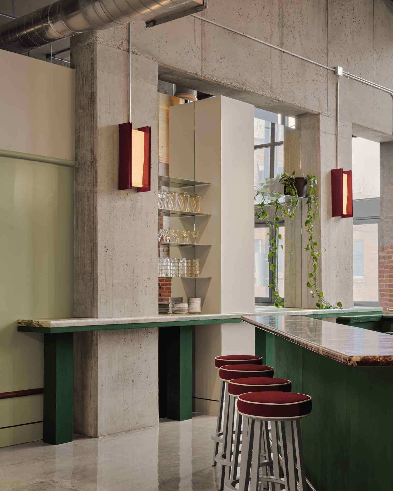 El estudio de diseño Ivy Studio apuesta por un equilibrio de autenticidad y modernidad. Las fachadas de ladrillo y los amplios ventanales sirven de fondo a un interior que conserva el carácter crudo y auténtico del edificio: suelos de cemento a la vista, estructuras de acero y paredes de ladrillo dialogan con intervenciones cálidas y refinadas, creando un equilibrio entre pasado y contemporaneidad.