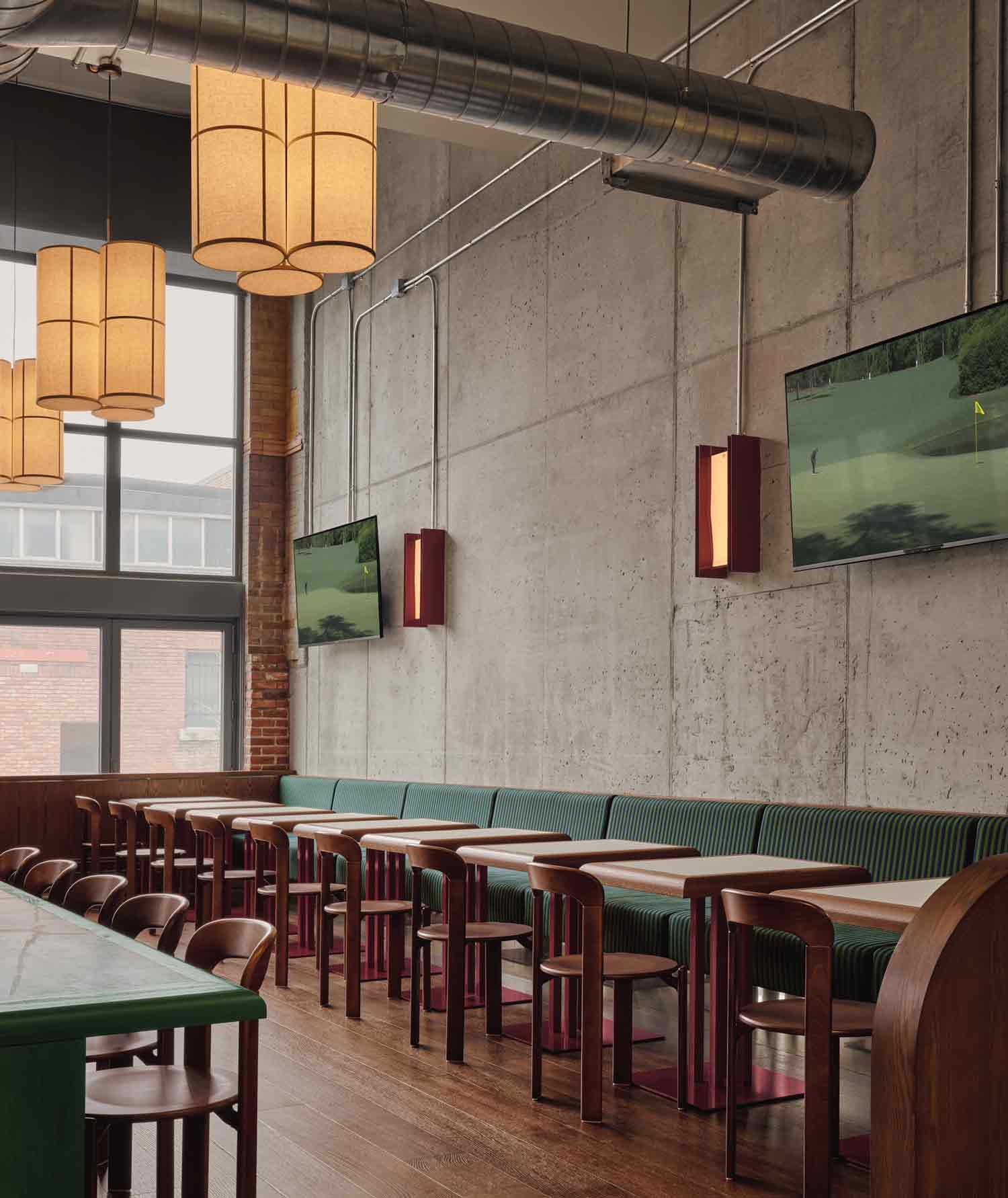 Situado dentro del Nordelec, imponente edificio industrial que data de 1913, MUNI nace en la intersección de Saint-Patrick y Shearer como un club de golf indoor capaz de ofrecer una experiencia social y envolvente.