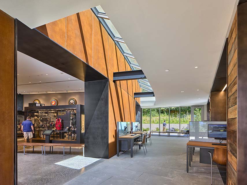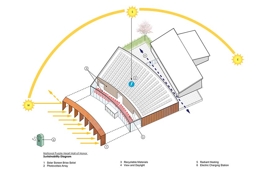 Entre los inspirados proyectos de arquitectura del estudio Ikon.5, destaca la National Purple Heart Hall of Honor que se presenta a la calle con su fachada de portales en acero corten y vidrio en un matrimonio de solemnidad e integración con el paisaje. El concepto del proyecto se inspira en los campamentos del siglo XVIII y está dedicado a los casi 2 millones de destinatarios del reconocimiento Purple Heart