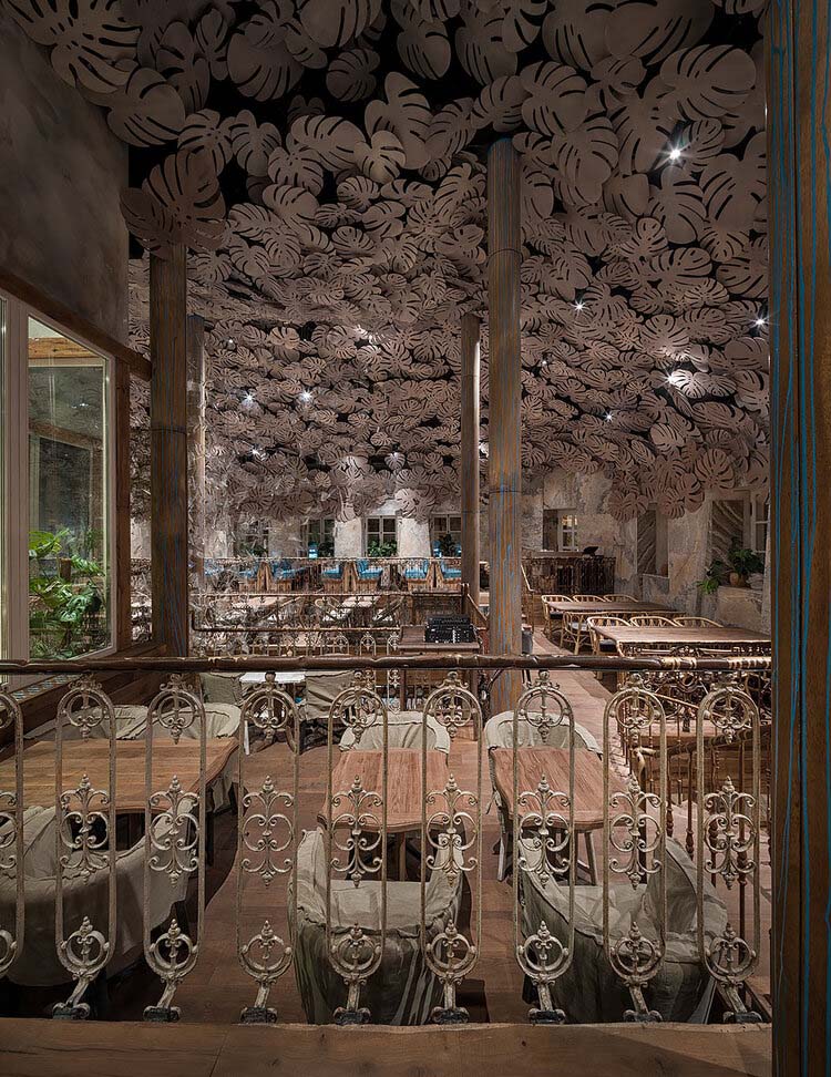 En el espacio altamente escenográfico del restaurante Nikos, cada elemento coexiste armoniosamente con los demás, manteniendo su peculiaridad y creando un ambiente que muestra creatividad e innovación