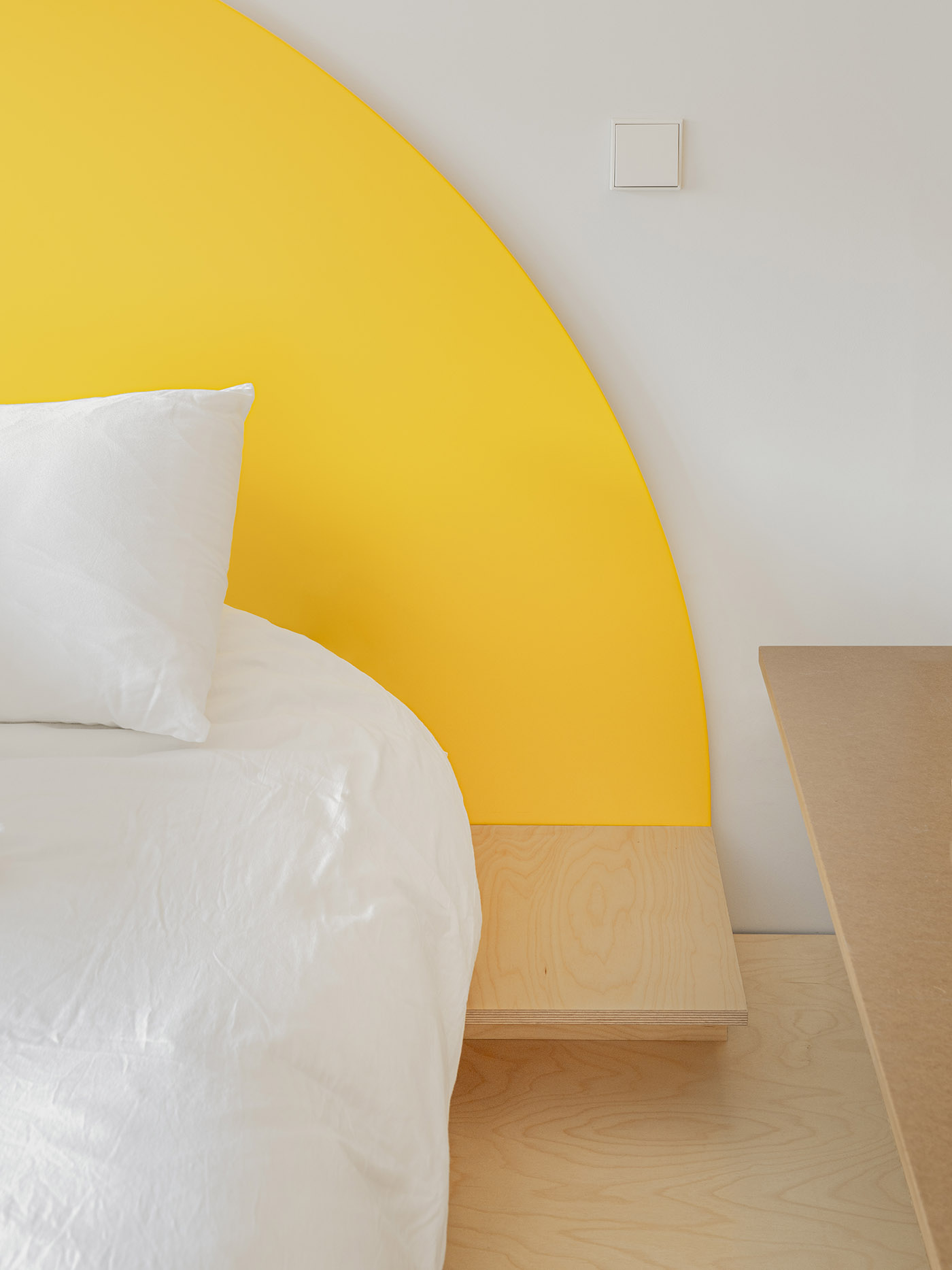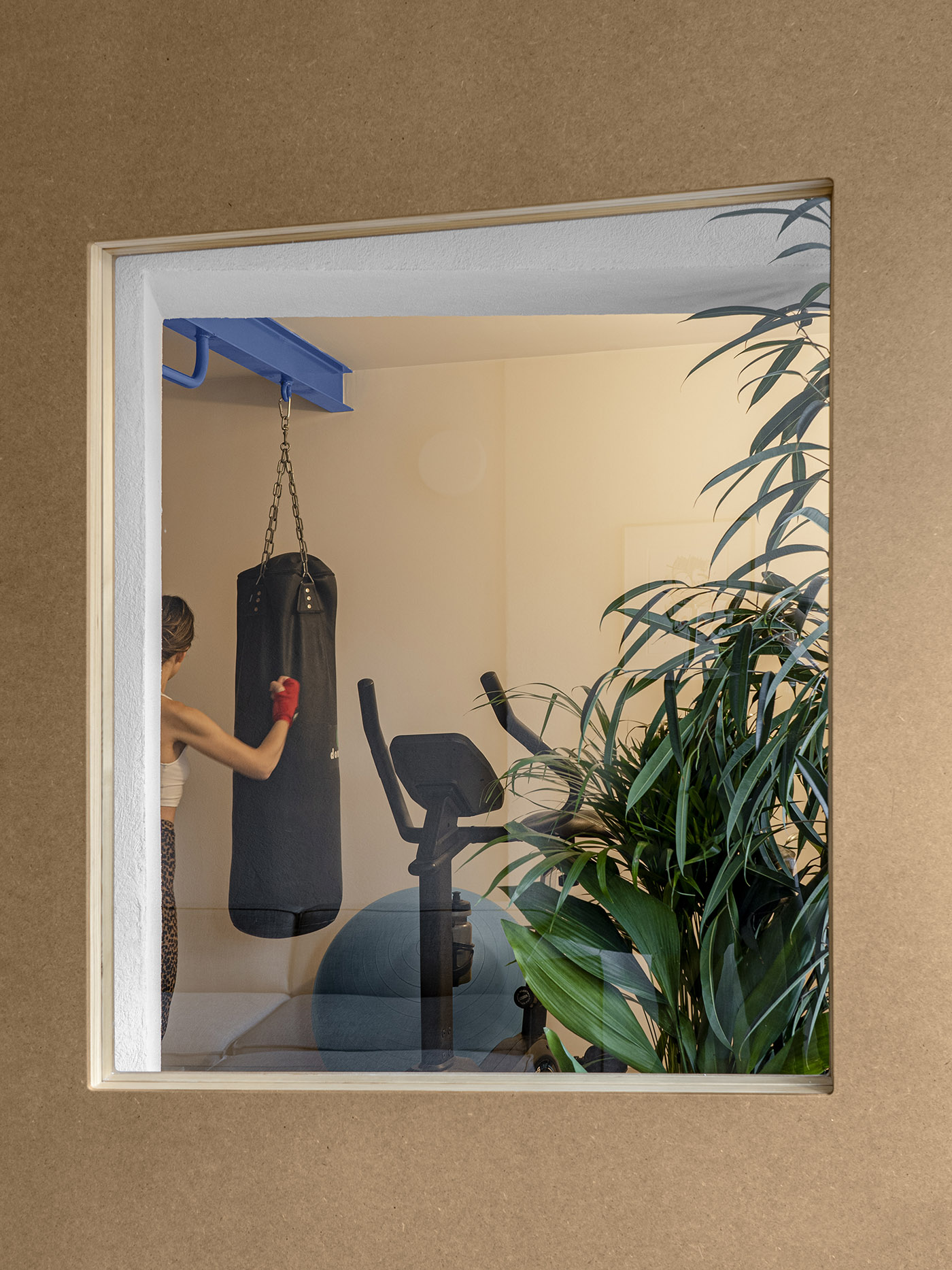 Los elementos de madera, por su parte, se apoyan en los suelos existentes, que han sido tratados para que pierdan sus revestimientos superficiales, recuperando un carácter bruto y estructural. Las zonas más íntimas de la casa, los dormitorios y el salón, tienen plataformas de madera contrachapada ligeramente elevadas y apoyadas en listones de madera