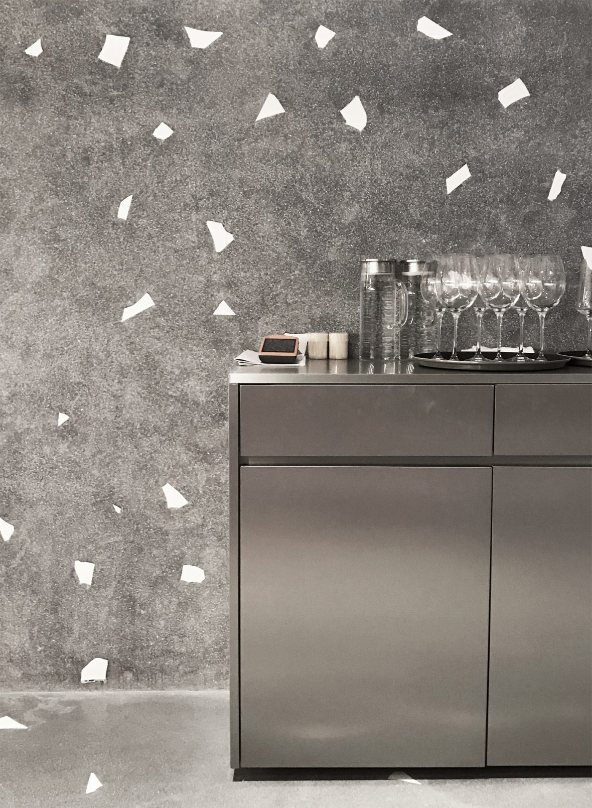 Para maximizar el contacto con el espacio, se utiliza un solo material y es precisamente a través del mecanismo del material que las emociones del cliente se ven influenciadas, creando una experiencia visual y culinaria única.