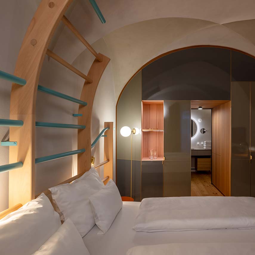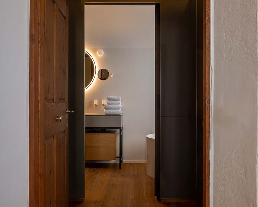 Propiedad de la familia Faller desde hace más de 40 años, el edificio del siglo XV es transformado por el estudio Vudafieri-Saverino Partners con un proyecto que encuentra el equilibrio adecuado entre el respeto por las preexistencias históricas y las necesidades de la vida contemporánea. La renovación de la casa reinventa su uso convirtiendo los dos primeros pisos en un Art Hotel de 4 estrellas superior y los dos últimos en residencia para la familia. El hotel consta de tres suites, seis habitaciones dobles y una individual, para un total de 10 habitaciones inmersas en una atmósfera sofisticada enriquecida por la colección de arte de los Fuller