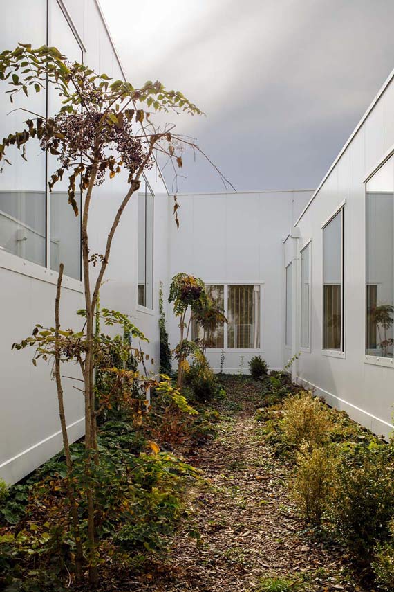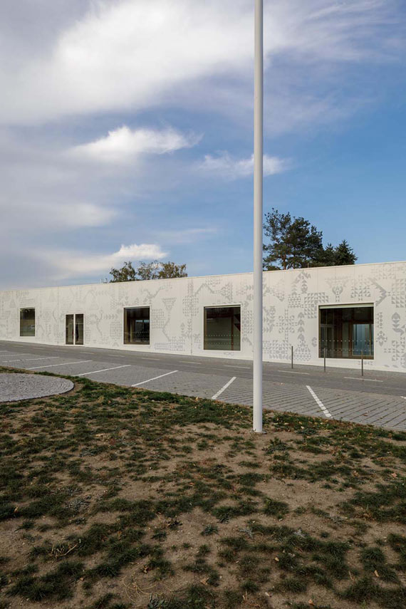 Diseñado por A.LT architekti, la esencia del diseño del nuevo Town Hall de Ďáblice se basa en la transparencia y la máxima apertura. Los elementos de luz y aire reflejan el principio del servicio público: el edificio pretende ser una caja abstracta y, por lo tanto, se viste en su fachada principal con una fantasía cambiante de blanco plateado y reflectante