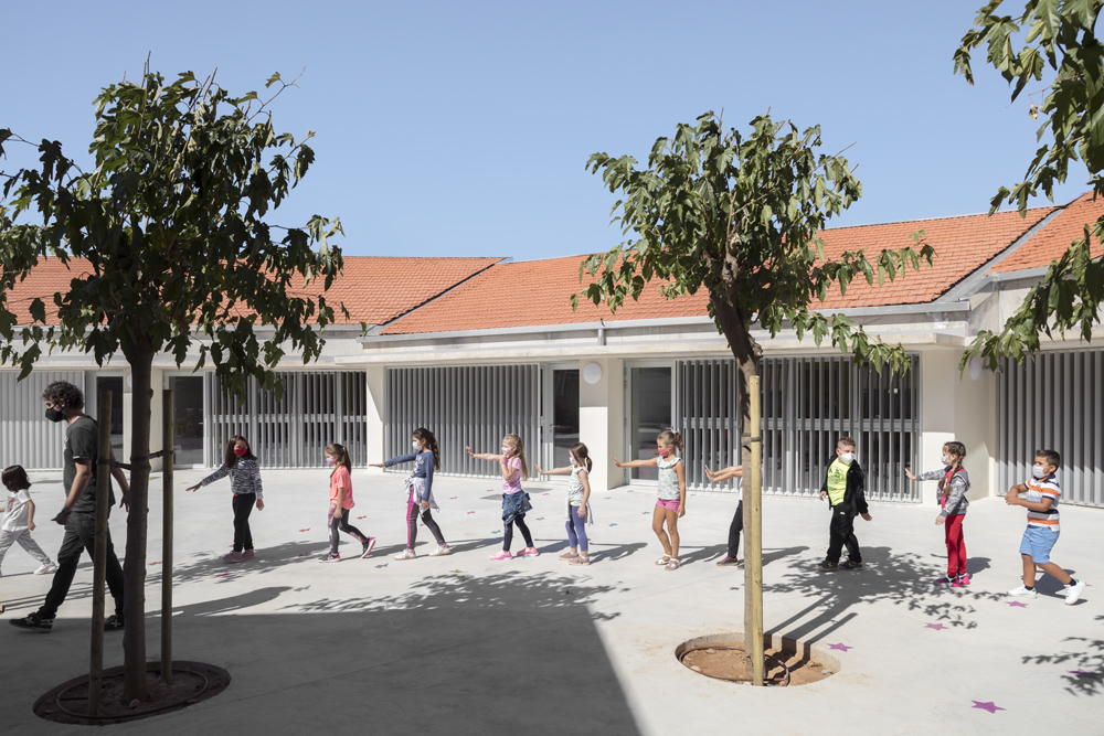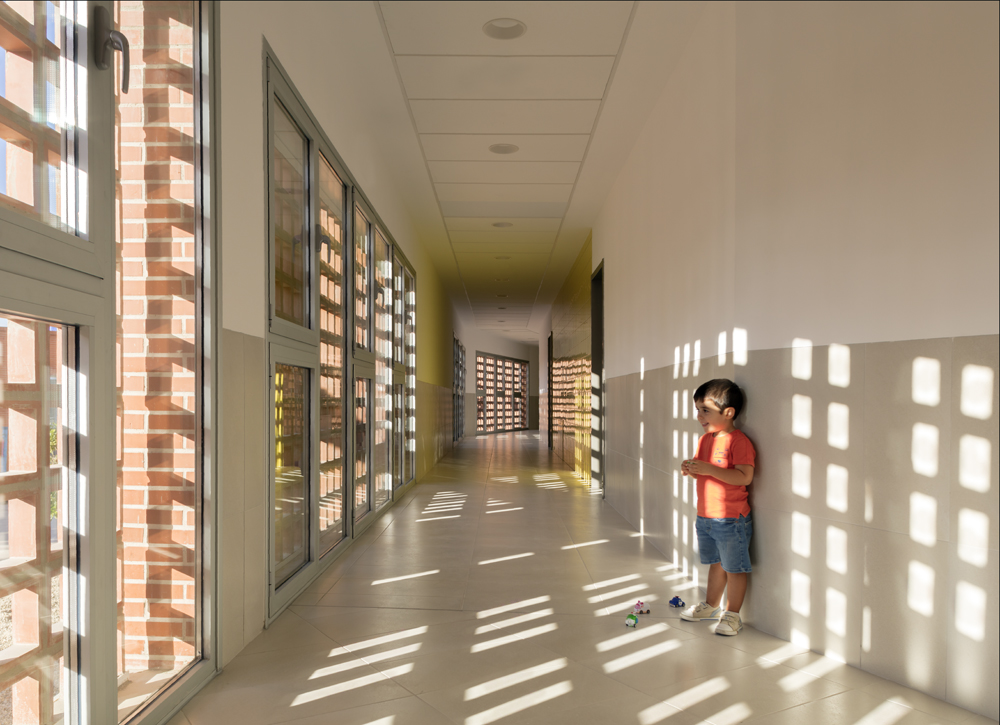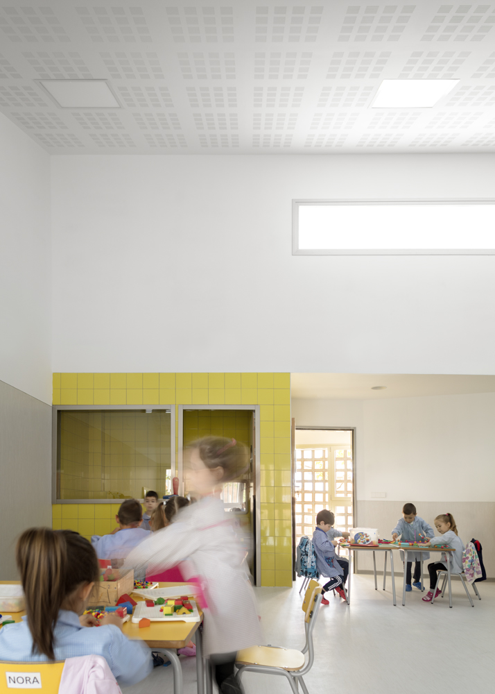 El estudio Salas Arquitectura + Diseño, en su proyecto de ampliación de un centro existente en Cariñena, España, con aulas, zonas de juego, comedor y oficinas, parte del análisis de cómo los niños perciben el espacio y se mueven en él
