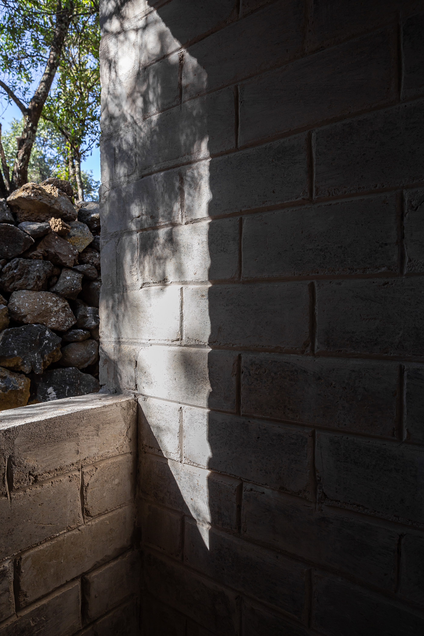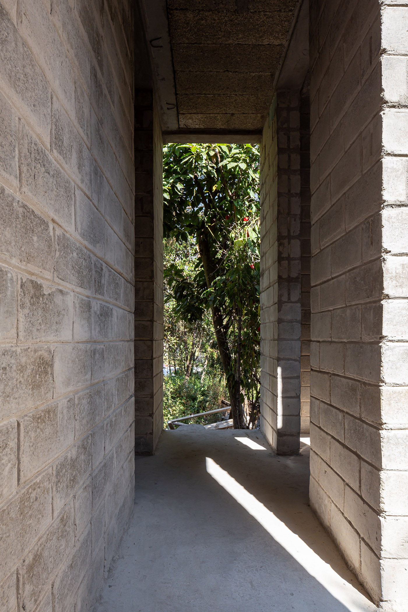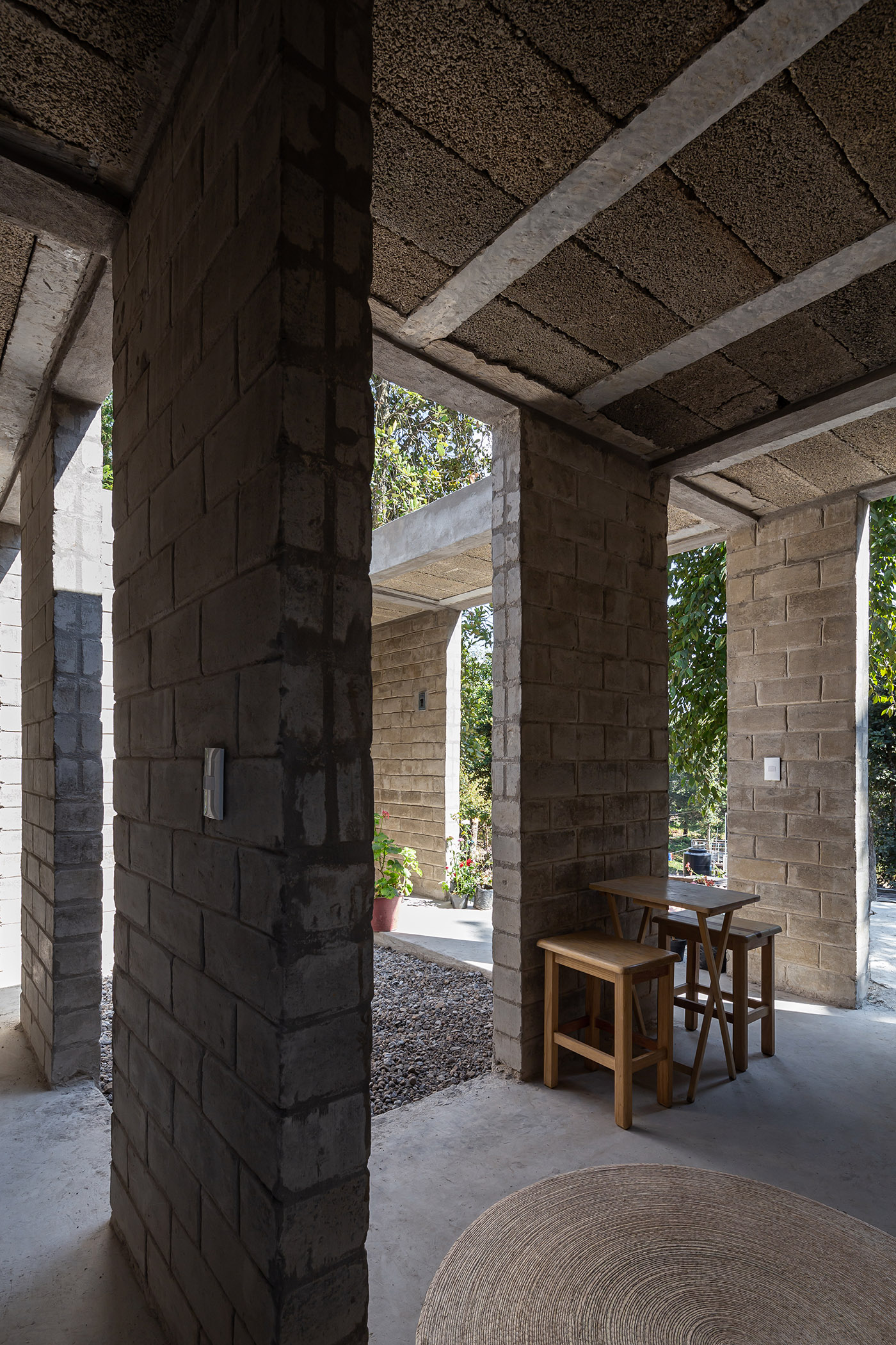 La casa debía construirse con el mismo presupuesto establecido para las casas de 45 metros cuadrados. Para transmitir una sensación de amplitud al reducido espacio, el diseño se configura con una serie de muros independientes que enmarcan vistas que dan profundidad más allá de los límites del conjunto construido