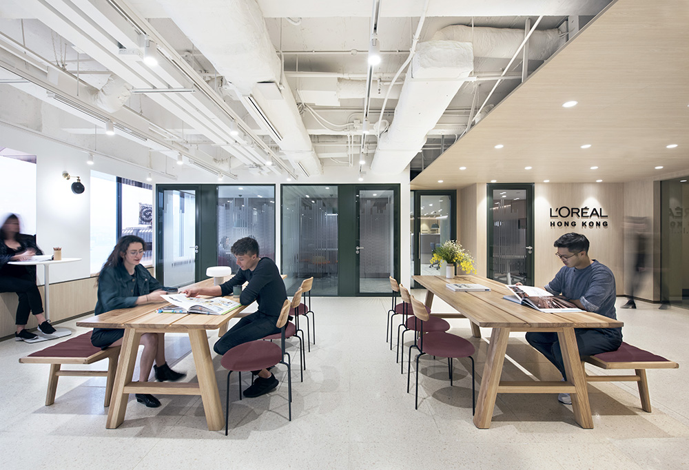 Bean Buro, encargada de diseñar la sede de L'Oréal en Asia, trata de reinterpretar las raíces francesas de la empresa, promoviendo el bienestar y los estilos de trabajo flexibles mediante la exploración de varias soluciones innovadoras