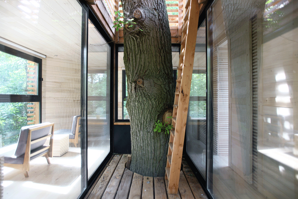 El Atelier LAVIT inició su proyecto tomando como punto de partida uno de los robles más bellos y altos del dominio del Château de Raray, en Francia. El diseño de Origin, la habitación de hotel que recuerda el diseño de una cabaña, es un verdadero reto arquitectónico