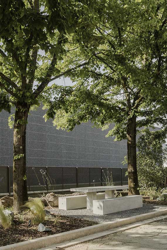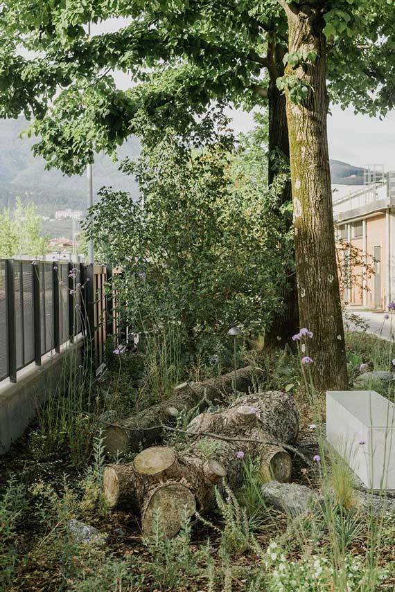 Renna Studio, junto con Cosimo Balestri Studio, se encarga del diseño de los espacios exteriores de una fábrica textil con el objetivo de transformarlos de áreas de almacenamiento y movimiento de mercancías a espacios sociales y naturales. Un nuevo Perímetro verde, alternado con las zonas funcionales, para reconectar la producción, las personas, la ciudad y la naturaleza. La intervención trabaja para apoyar la biodiversidad incluso reutilizando las rocas de las excavaciones y los troncos que era necesario talar como decoración de jardines muy apreciados como refugios para insectos y pequeños animales salvajes
