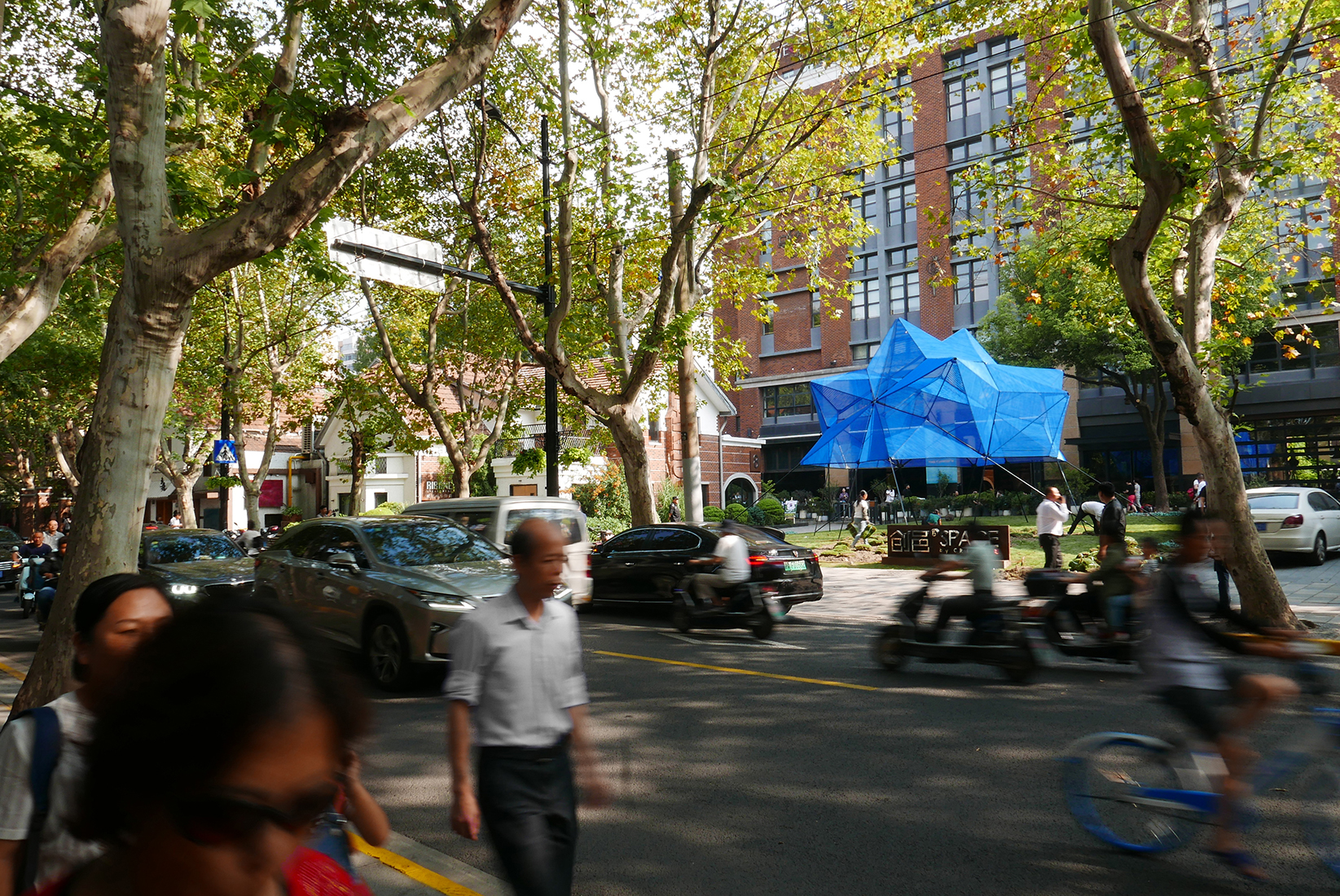 Por primera vez, el estudio Atelier Yok Yok ha creado un pabellón temporal en Shanghái, en el distrito artístico de Changning. Un escenario como un muffin de cobalto destinado a albergar conciertos y eventos al aire libre