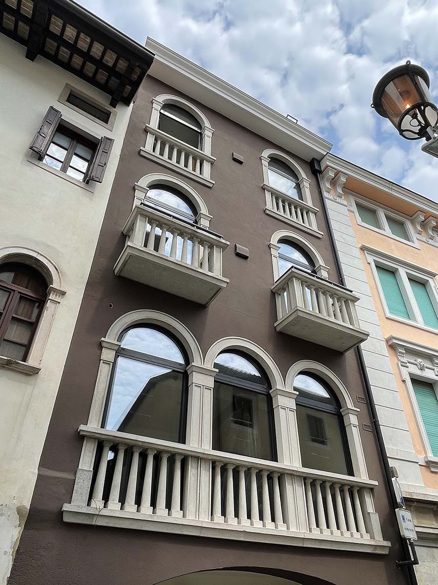 Il Panorama Hotel Friuli, situato nel cuore storico di San Daniele del Friuli, rappresenta un connubio perfetto tra tradizione e modernità. L'edificio, che dal 1952 ospita una struttura ricettiva, ha subito un intervento di riqualificazione mirato a conservare le tracce storiche, valorizzando gli elementi architettonici originari. Gli archi e i massicci pilastri rivestiti in pietra piasentina testimoniano un passato che si intreccia con il presente, creando un’atmosfera unica.