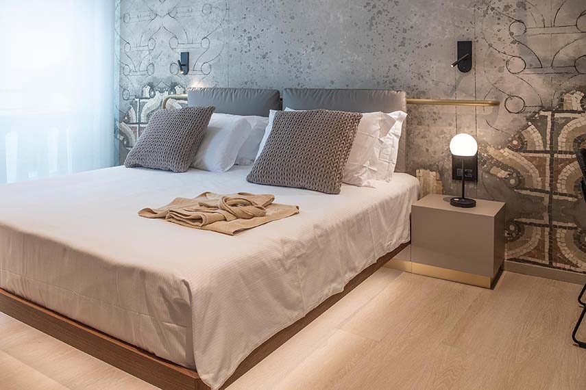 Las 12 habitaciones y suites del Panorama Hotel Friuli ofrecen una experiencia de alojamiento refinada y personalizada. Cada habitación tiene su propia identidad, con muebles a medida, mosaicos decorativos y telas que evocan la tradición friulana. La atención a los detalles, la elección de materiales naturales y la optimización de los espacios han permitido crear dos habitaciones adicionales en comparación con la configuración original, ofreciendo un total de 10 nuevas plazas para dormir.