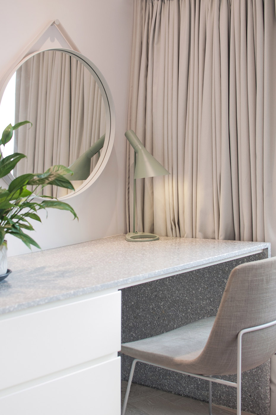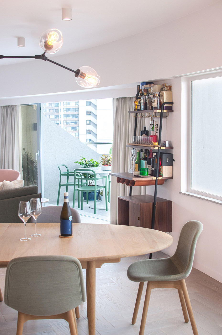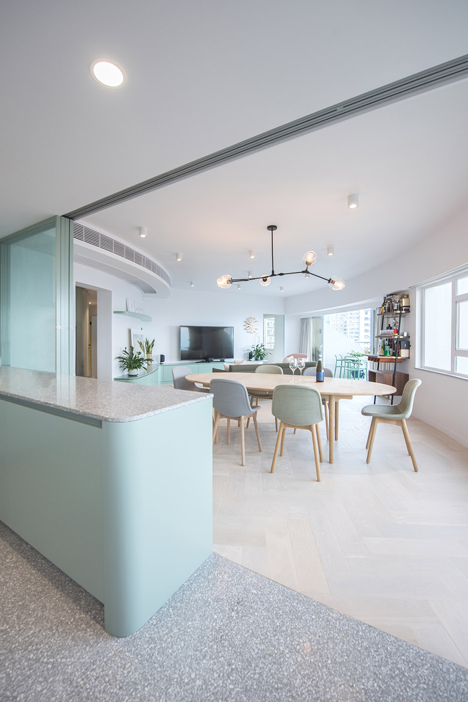 A Bean Buro se le encargó el diseño de un apartamento de 190 m2 en una torre circular, cuya disposición se adapta perfectamente a la forma curvilínea de los espacios, utilizando de la mejor forma posible la fachada de vidrio que se abre hacia las vistas circundantes