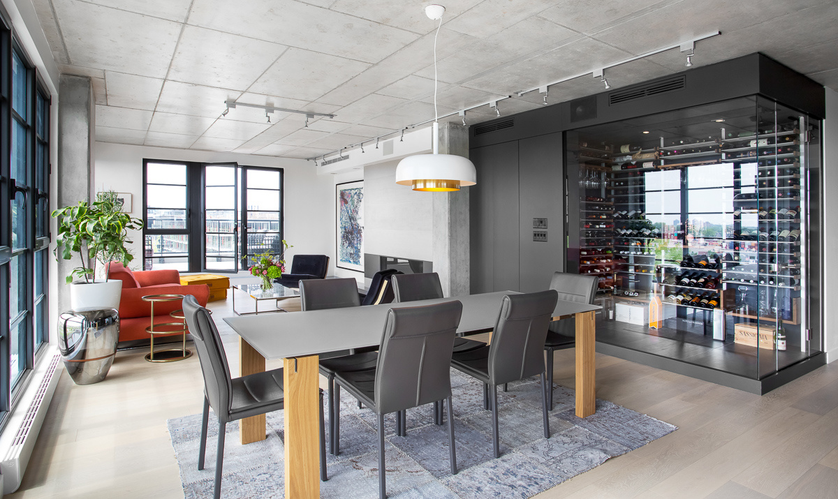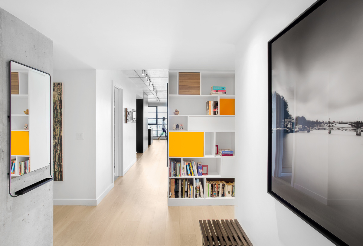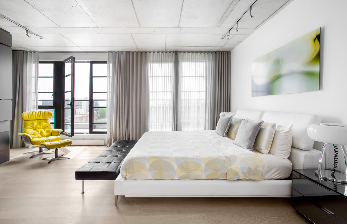 Loft en Montreal. Negro, roble blanco y detalles de color para un diseño interior urbano y joven