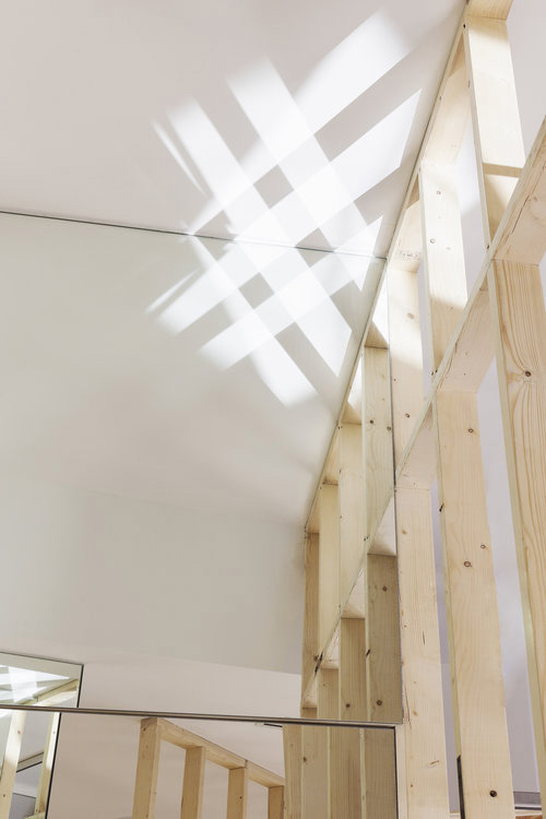 Jordana Maisie Design Studio realiza para FEIT una zapatería de madera de abedul, con muebles únicos hechos por carpinteros en el sitio, con geometrías inclinadas y paredes esqueléticas, que hacen que los espacios sean más brillantes y dinámicos