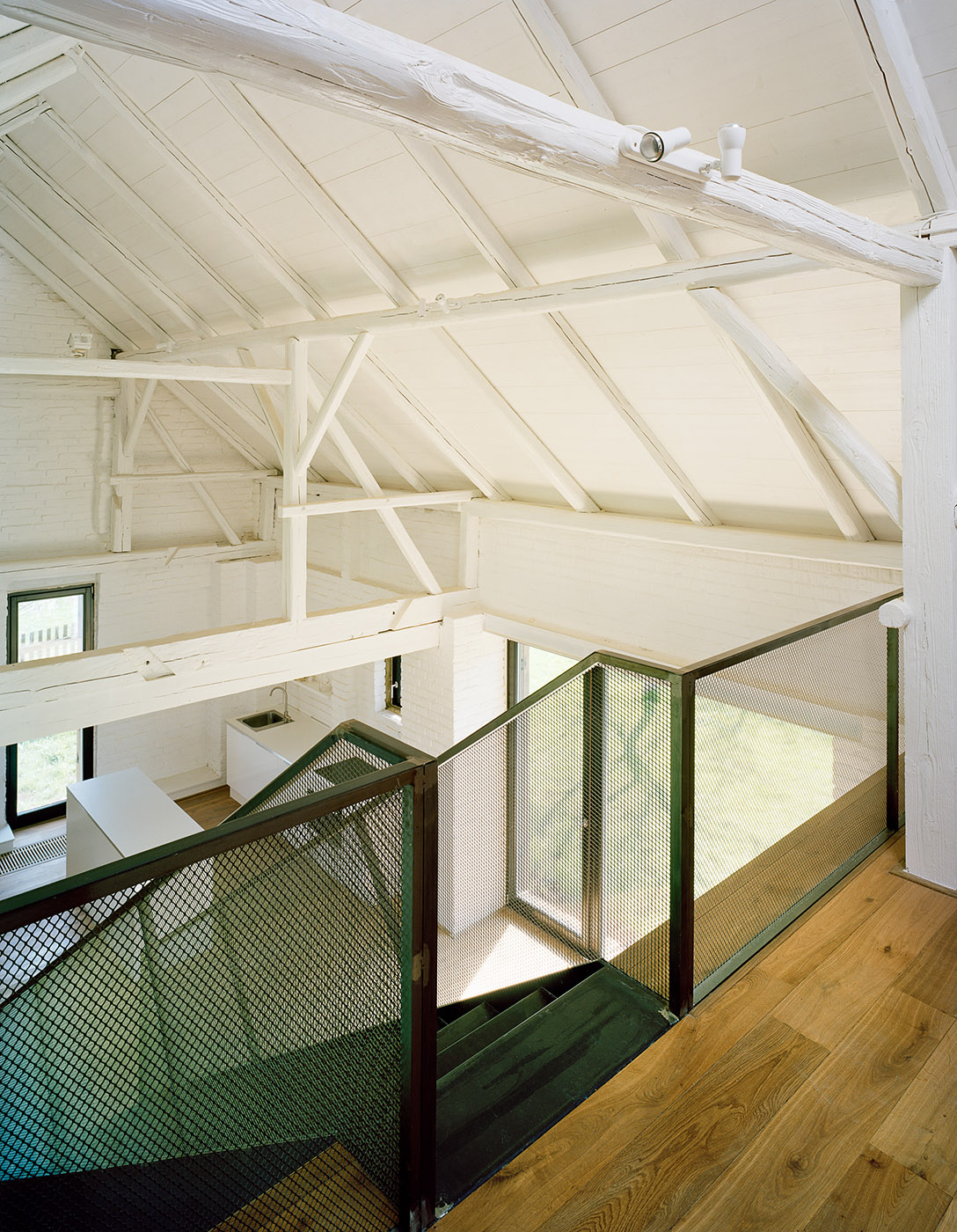 La casa original constaba de tres partes alineadas una tras otra: la parte delantera de madera, con la sala principal, la entrada y la cocina, el granero de piedra, con su techo abovedado, y el granero de ladrillo. En el proyecto, la parte original de la vivienda se habría convertido en la habitación de invitados y las partes de servicio en la nueva zona de estar de la casa