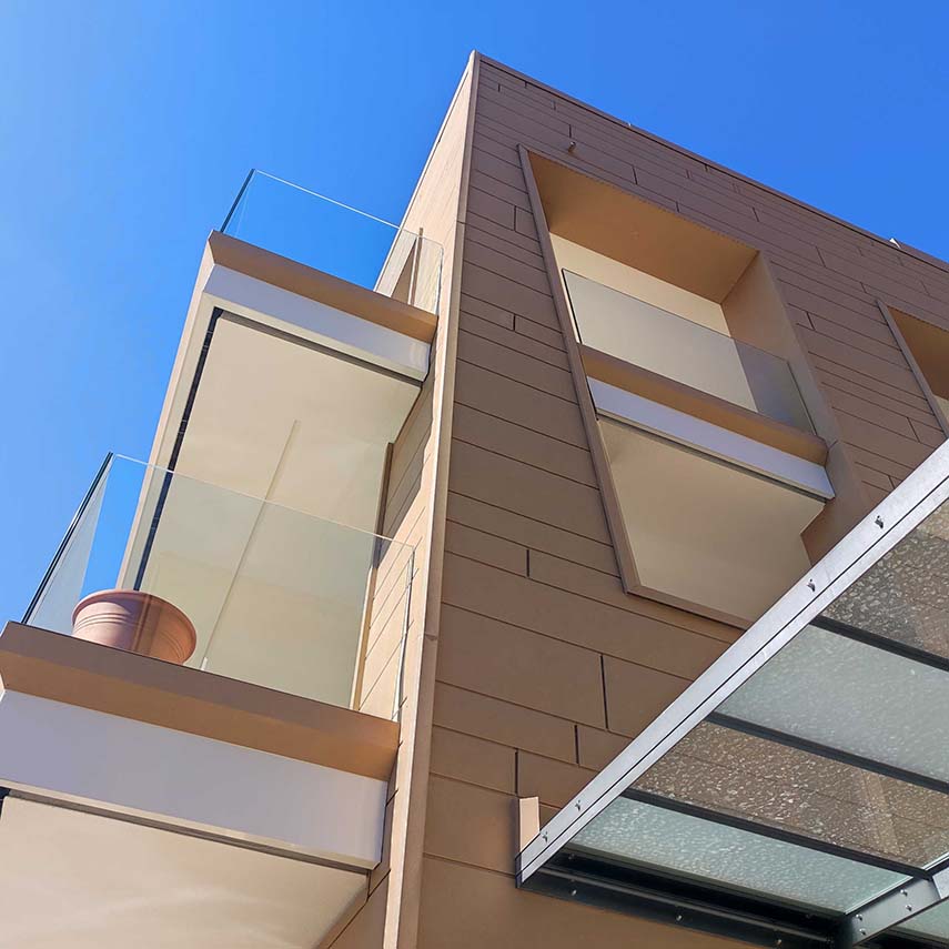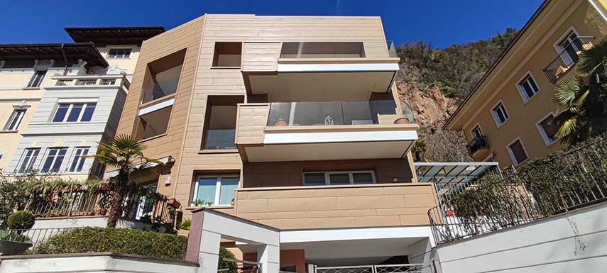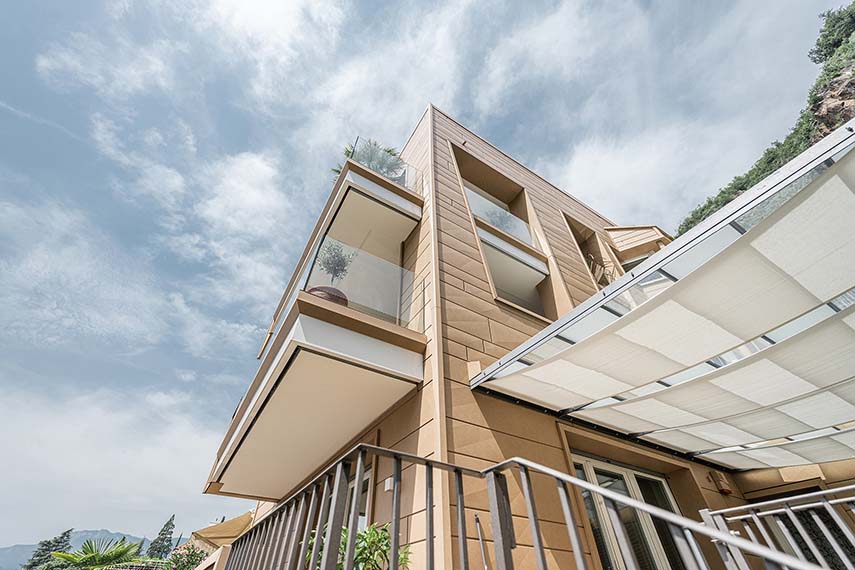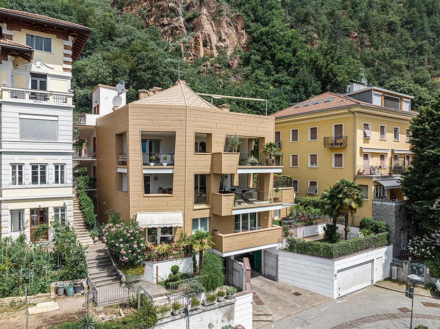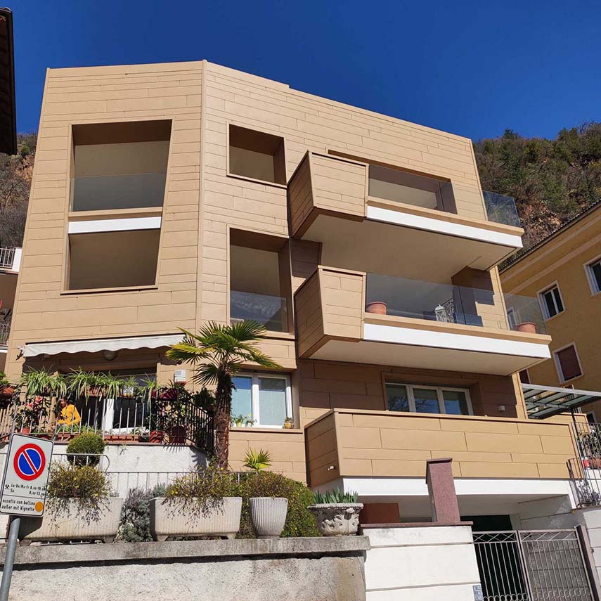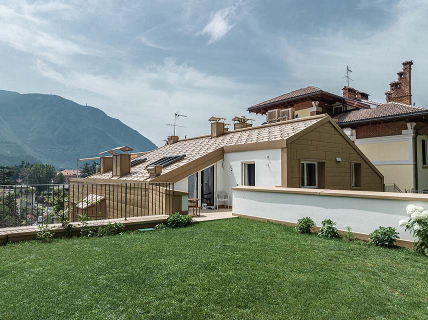 El estudio de proyectos arquitectónicos Valentino Andriolo, con su visión, ha reescrito hábilmente la narrativa que rodeaba esa zona, otorgando al edificio la majestuosa forma de un imponente monolito con fachadas esculpidas de manera irregular y salientes. La fluidez entre la línea del techo y la superficie frontal se ha mantenido magistralmente mediante la eliminación de salientes, creando una sinergia armoniosa entre los elementos horizontales y verticales, entre el cielo y la tierra.