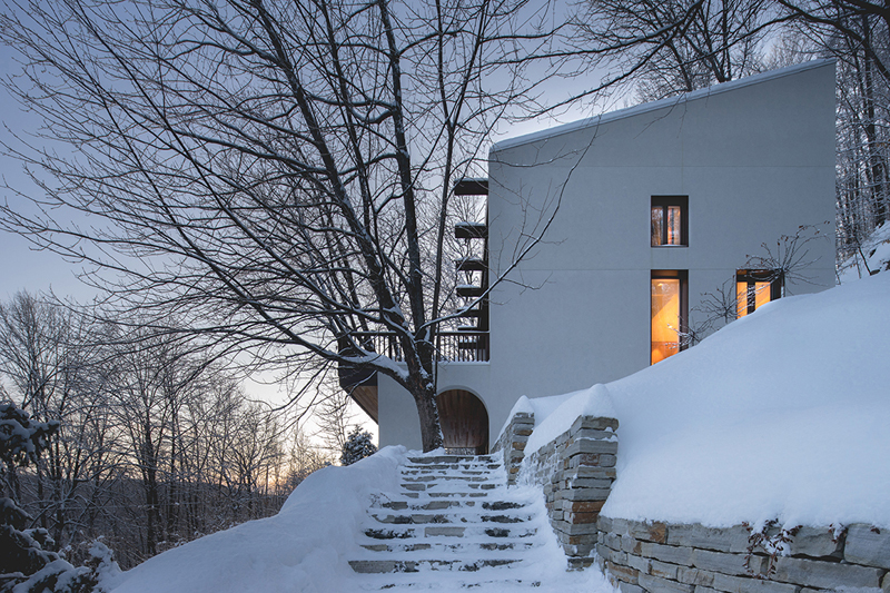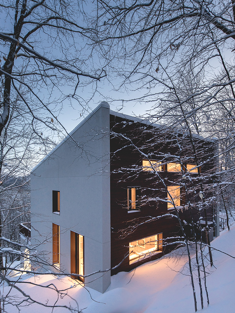 La vivienda, originalmente de la década de 1960, con características escandinavas de los mismos períodos, en los que la importancia de los materiales, el contexto y la función es la clave del diseño, es reestructurada por el estudio canadiense Alain Carle Architect
