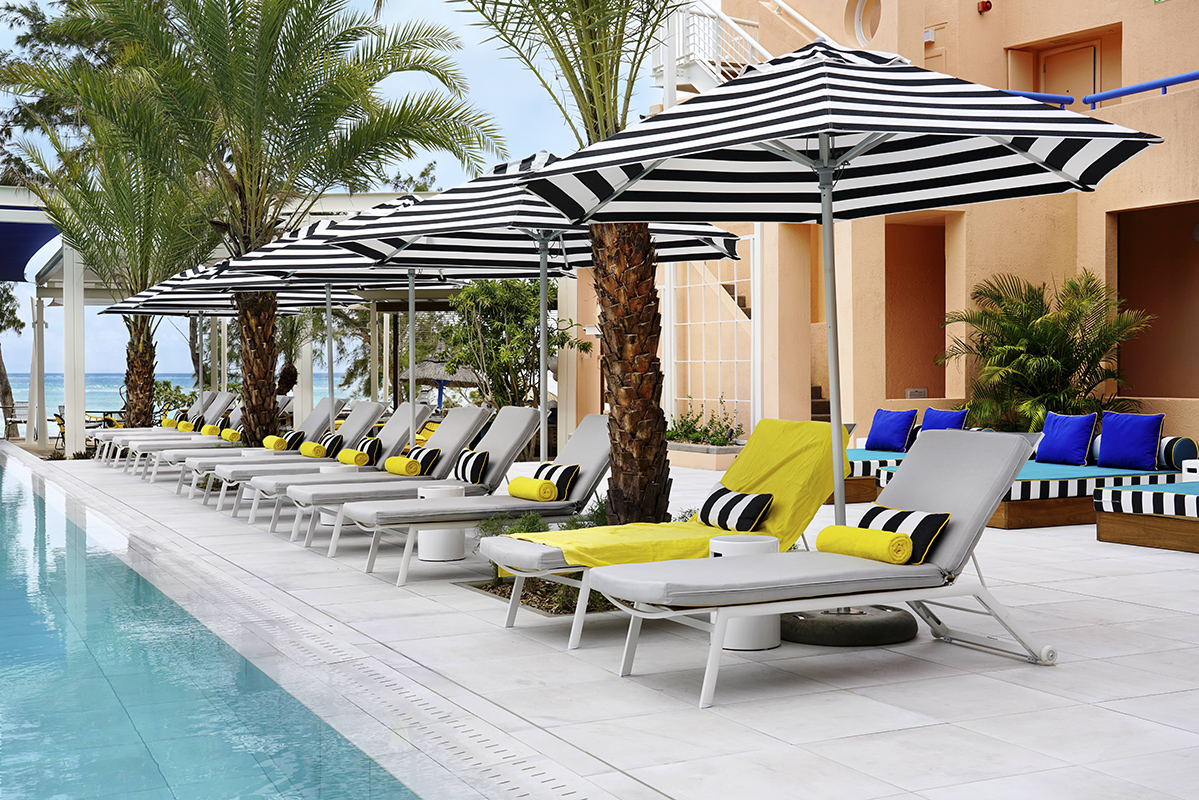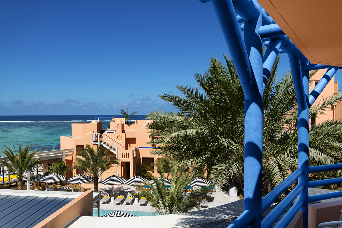 Camille Walala, para este proyecto, trabajó en estrecha colaboración con el arquitecto mauriciano John-François Adams para realizar su visión interior de las 59 habitaciones y áreas públicas del hotel, traduciendo las ideas sobre las mesas atmosféricas de Camille en realidadesvivaces y espectaculares. Camille y Julia también recurrieron a la experiencia local de Adams para reclutar a los artesanos más talentosos del área para diseñar piezas a medida para el proyecto