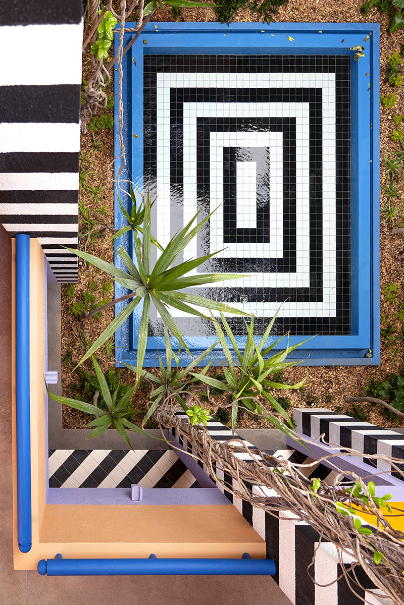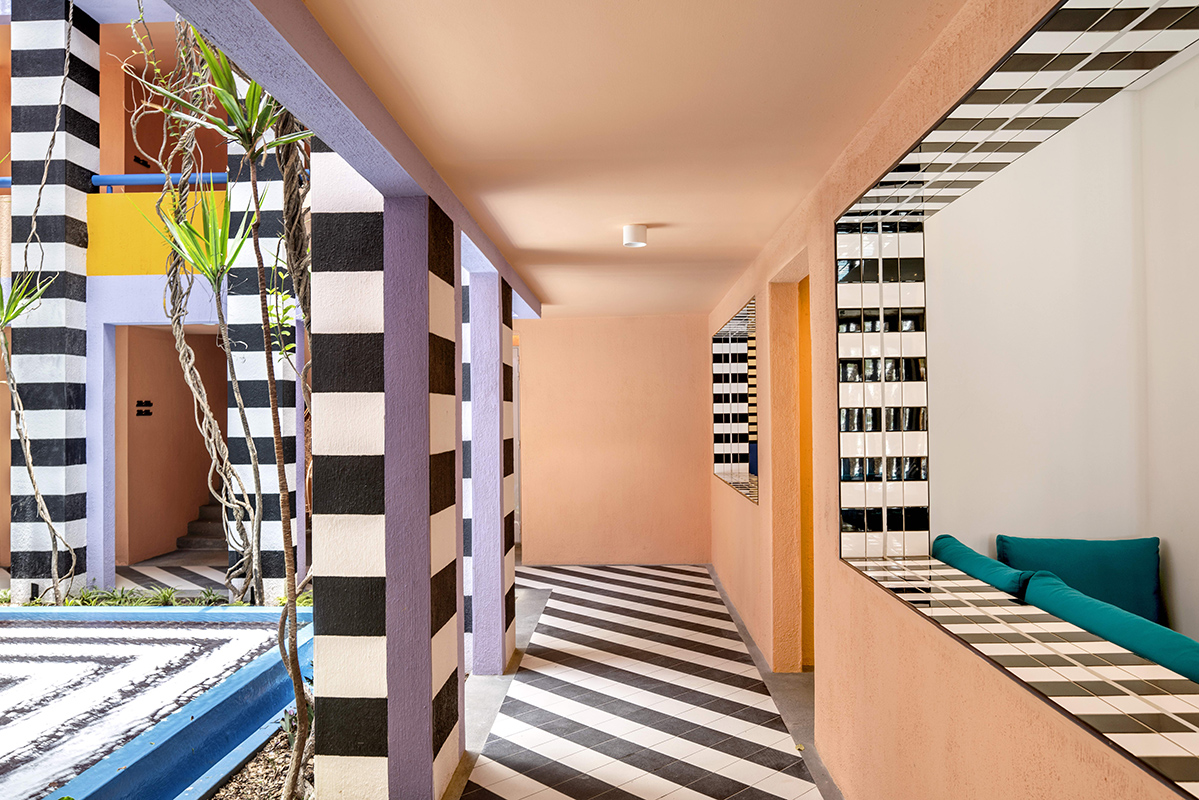Camille y su colaboradora desde hace mucho tiempo, Julia Jomaa, decidieron explorar la isla para encontrar ideas para la paleta de colores como primer paso en este proyecto, observando tanto el paisaje natural como el entorno artificial. . El resultado equilibra los tonos naturales y las vibrantes notas pop de Walala, y presenta un motivo recurrente de rayas en blanco y negro