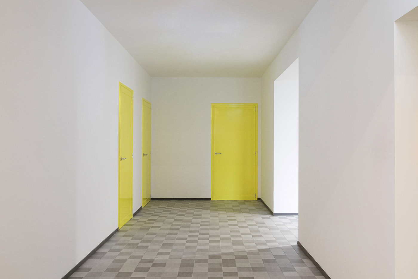 El despacho de arquitectura de Giulia de Apollonia es la responsable del diseño arquitectónico del School gym Zanella en Villafranca, incluido el cuidadoso estudio de la tecnología constructiva que se adoptará. La estructura de hormigón existente se ha revestido desde el interior mediante contramuros de cartón-yeso oportunamente aislados. En ambos lados del espacio del gimnasio hay grandes superficies acristaladas, compuestas por una capa exterior de policarbonato y una capa interior de vidrio transparente