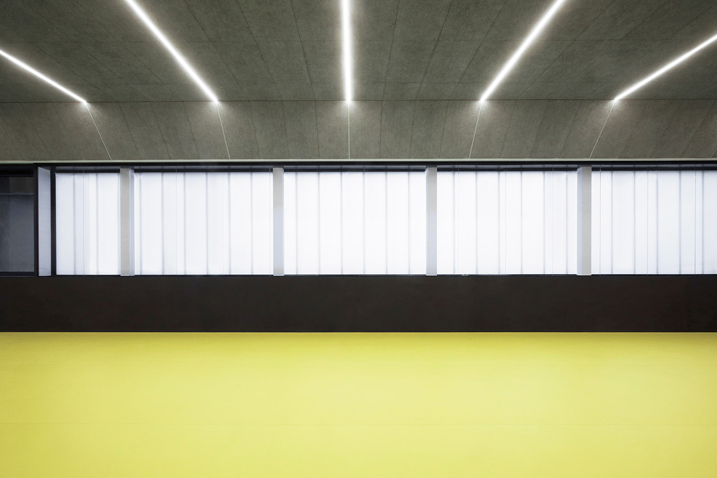 Acabados de la School gym Zanella en Villafranca: color, luz y materiales de altas prestaciones
