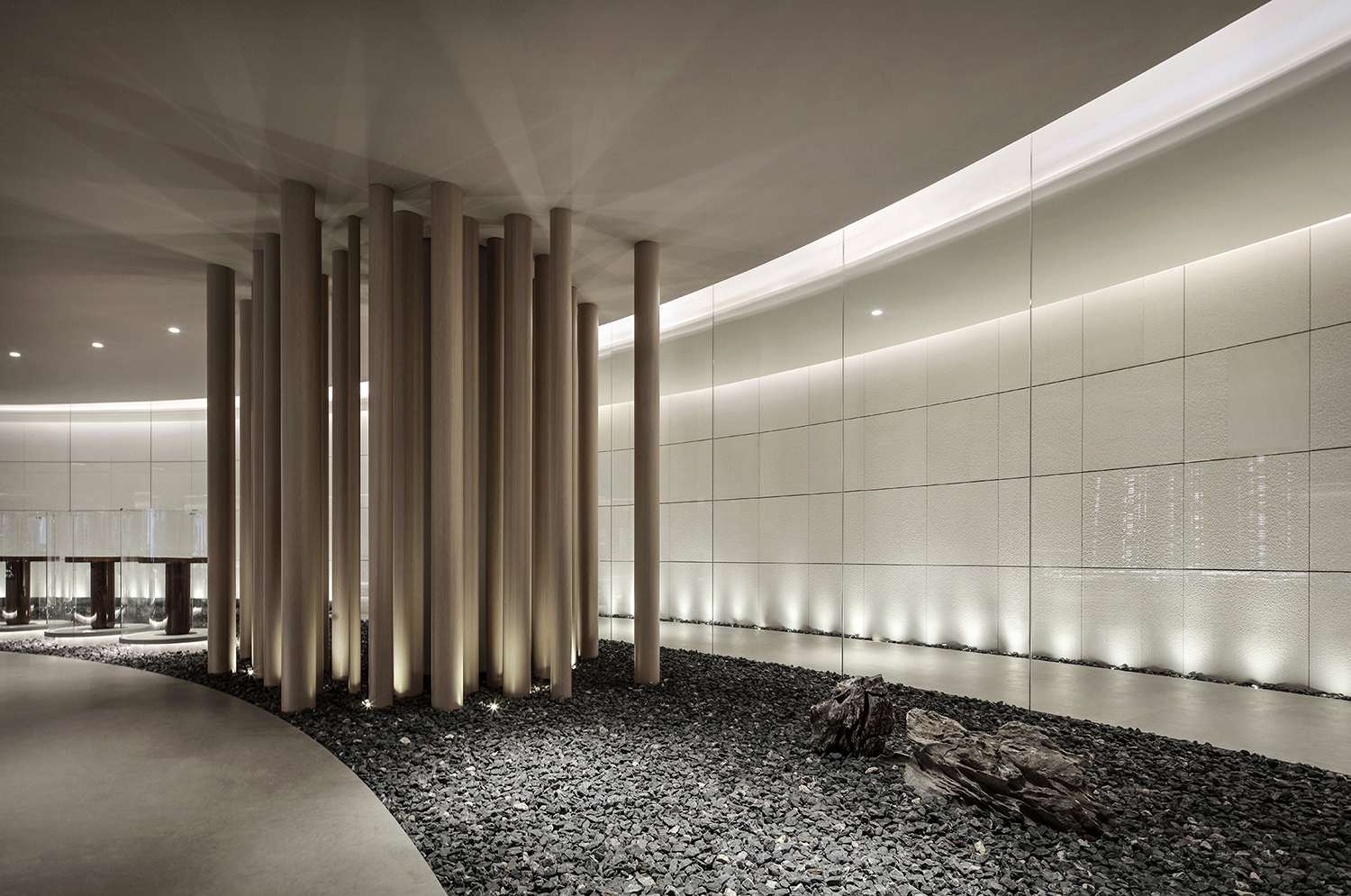 Entrando nello spazio dal primo piano, i visitatori sono in grado di cogliere la vista del cortile, cielo e acqua in tempi diversi, angoli e prospettive. Tale design ha preso in prestito lo stile dei giardini classici cinesi, che è semplice e disadorno, lasciando spazio all'immaginazione