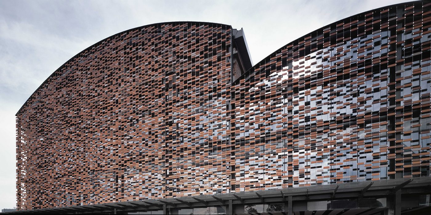 En la fachada norte se ha restaurado el muro de ladrillo existente, mientras que para la fachada oeste, que da a la calle, el arquitecto Kuma ha diseñado un gran muro de ladrillo que consta de cuatro tonos diferentes de arcilla roja que conecta el norte y el sur del edificio. La estructura, suspendida por cables de acero inoxidable de 8 mm de grosor, se desvanece gradualmente con un juego de sombras hacia la fachada transparente orientada al sur
