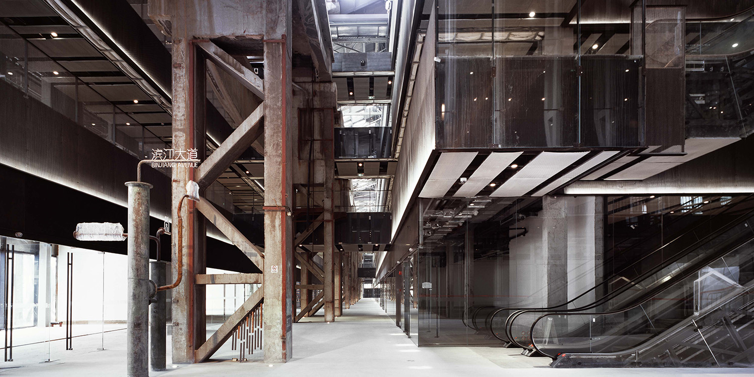 Un antiguo astillero, en el distrito financiero de Pudong en Shanghai, se reinventa como un complejo de usos múltiples a través del proyecto del arquitecto Kengo Kuma, enfatizando la continuidad con el pasado a través de la majestuosidad de los espacios y la materialidad