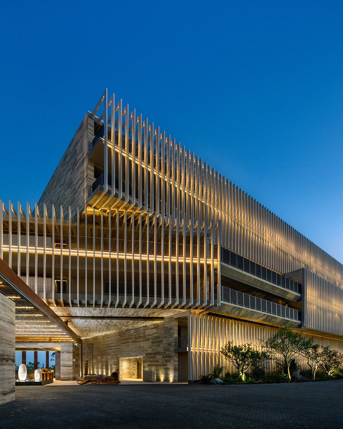 Inmerso en la extraordinaria belleza natural de la península de Baja California, el Hotel Solaz Los Cabos, diseñado por Sordo Madaleno Arquitectos, se extiende sobre 9,8 hectáreas frente al Mar de Cortés. Este proyecto se enmarca dentro de los proyectos de arquitectura que celebran la simbiosis entre paisaje, arquitectura y arte, integrándose perfectamente con el contexto semi-desértico de tonos ocres que contrastan con el intenso azul del mar. Cada elección de diseño, desde los materiales locales hasta la vegetación, tiene como objetivo reforzar el vínculo entre el hotel y el territorio circundante.