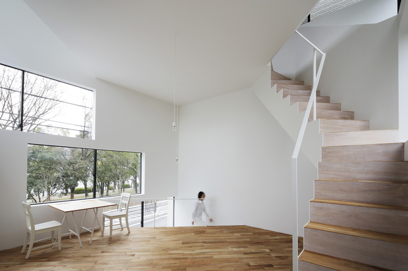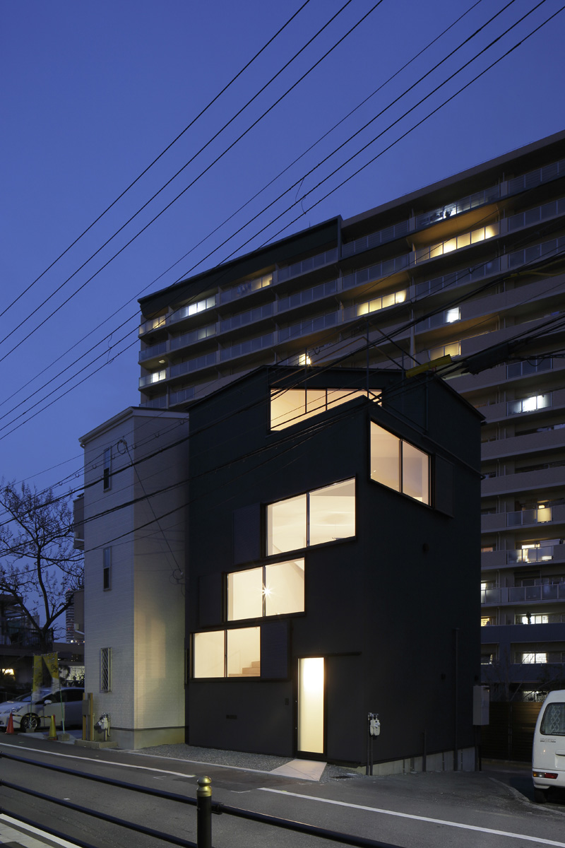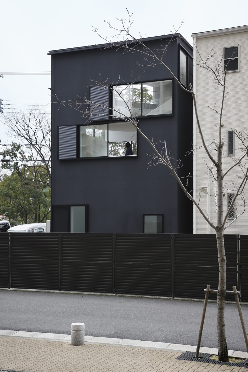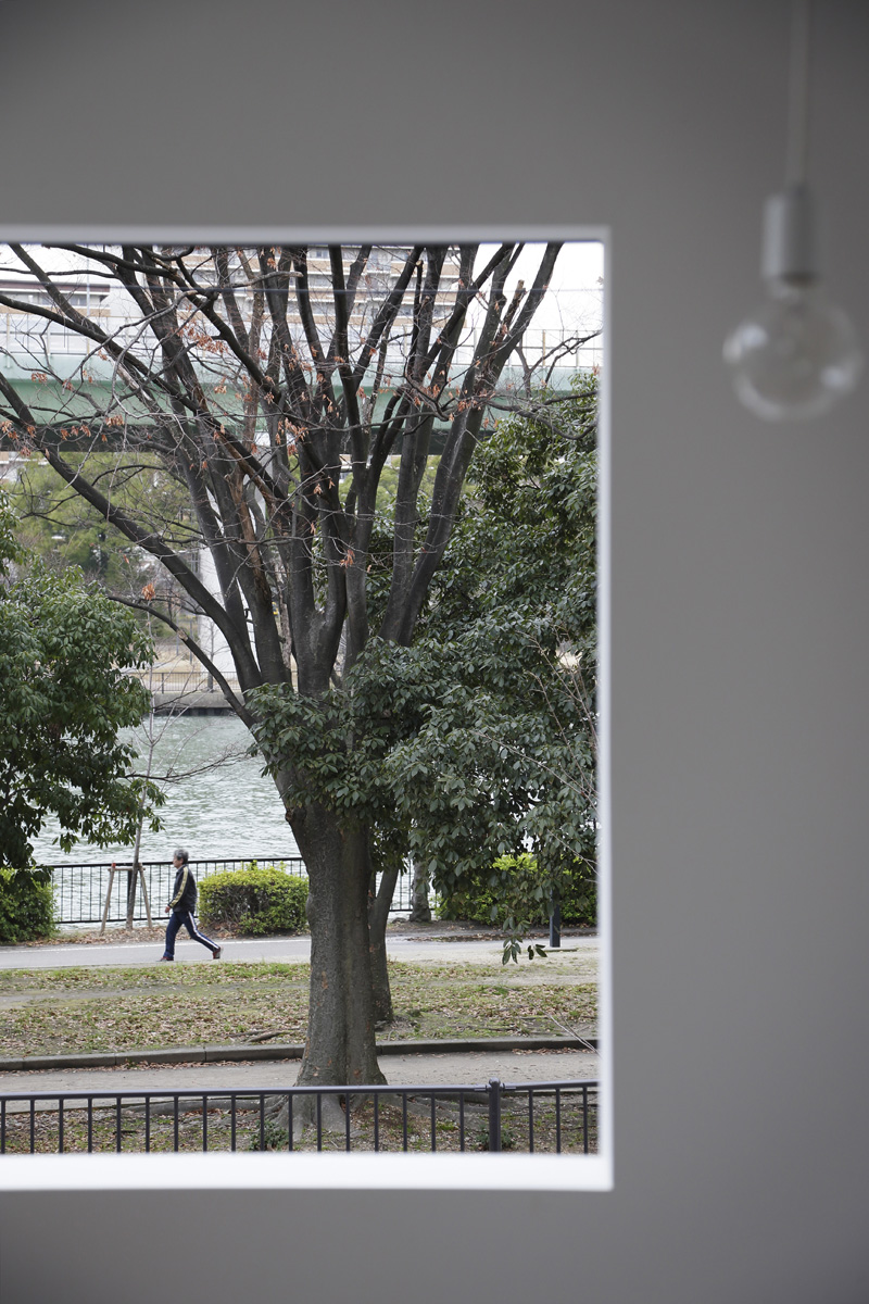 La casa se encuentra en un sitio muy estrecho, rodeada por algunos condominios en la parte posterior, y se proyecta, gracias a las aberturas, hacia el río Yodo, así como hacia la carretera y el cielo, creando un equilibrio entre la sensación de libertad y la necesidad de privacidad