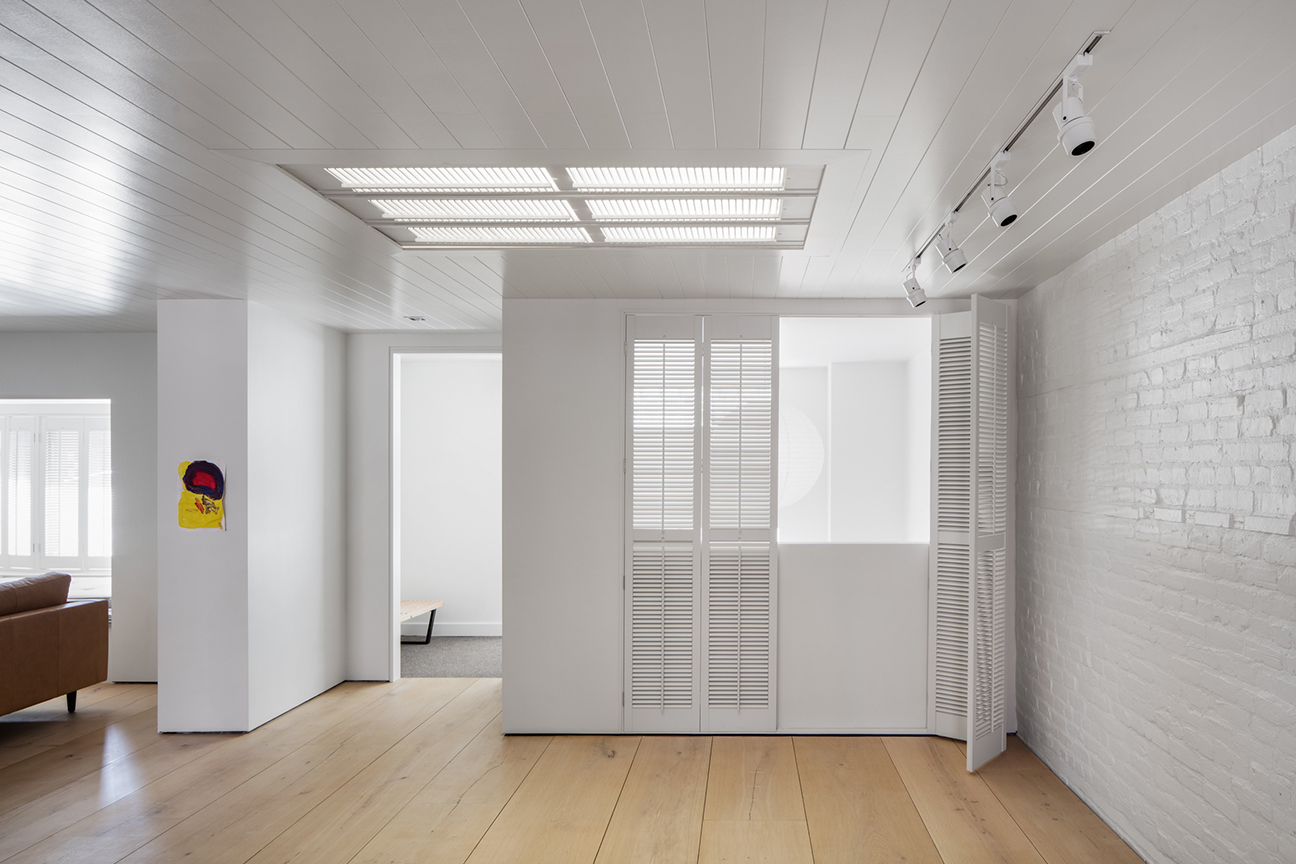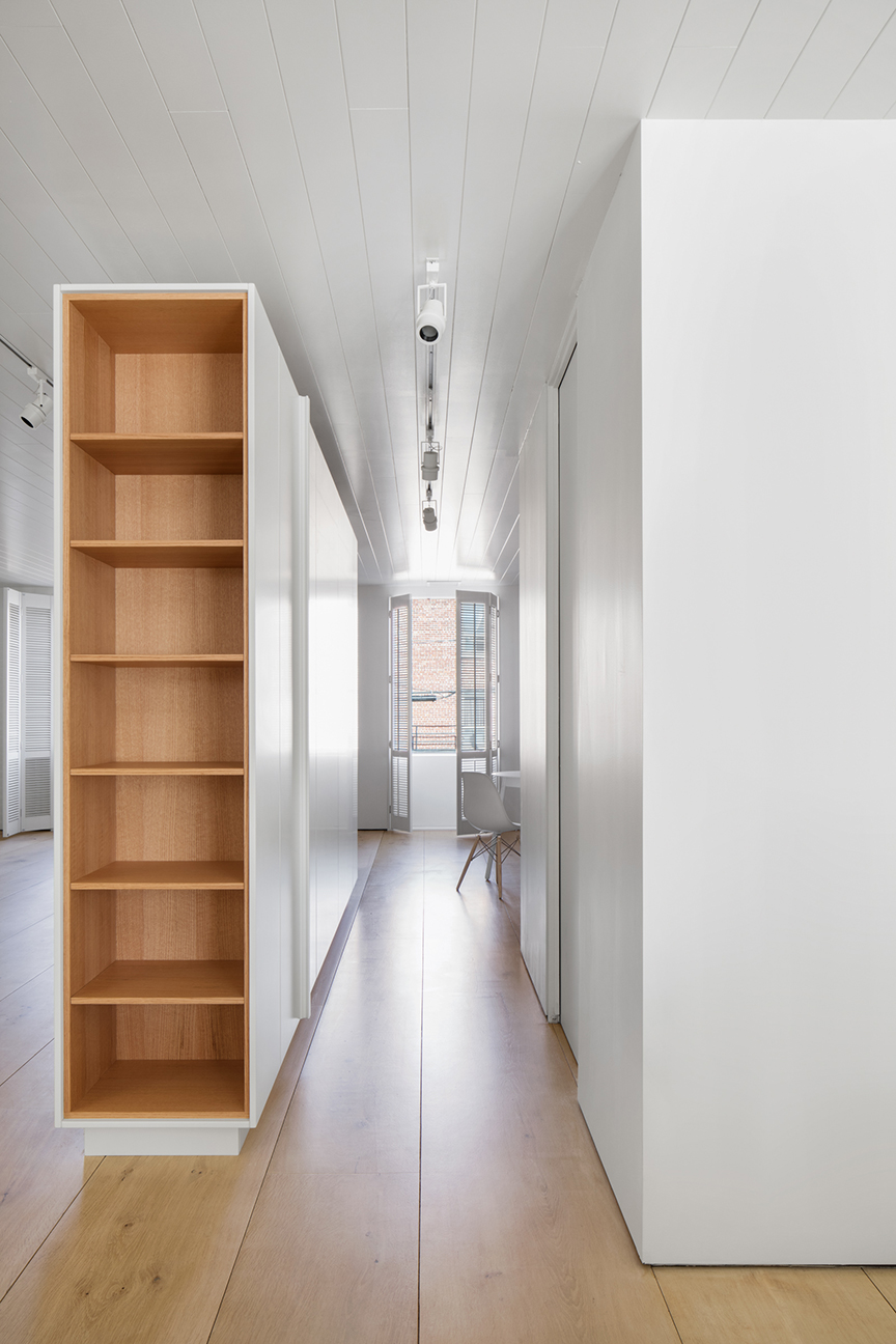 Gracias a la incorporación de persianas en los huecos, se modula la entrada de luz natural, con un dispositivo sencillo y estético. El espacio y su mobiliario están cuidadosamente diseñados para equilibrar los espacios llenos y vacíos del lugar