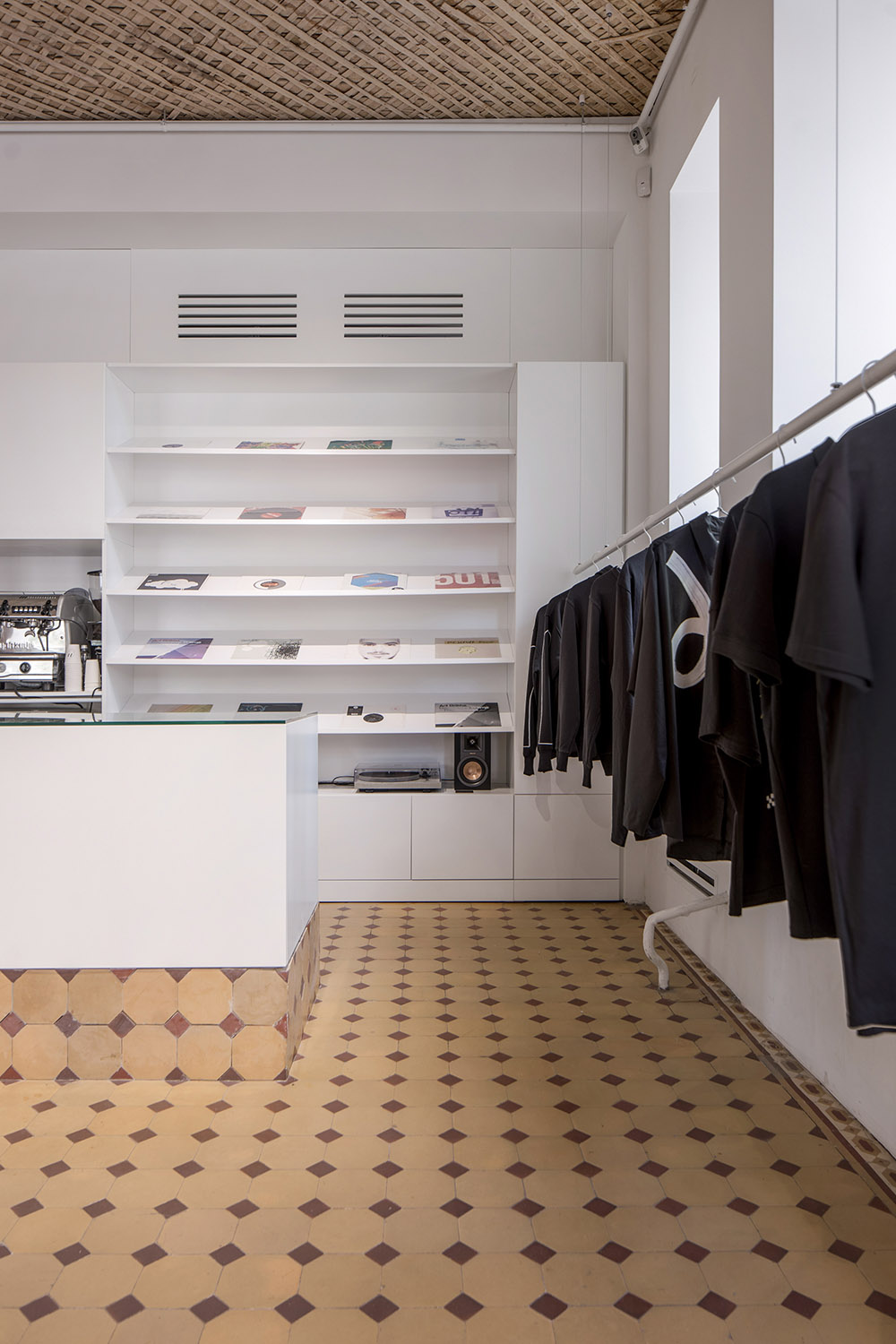 Los únicos elementos originales que quedan son el viejo suelo de terracota y el techo, de listones y enyesado, que han sido cuidadosamente desempolvados y limpiados. El resultado es un perímetro con paredes blancas uniformes, formas simples y ángulos rectos