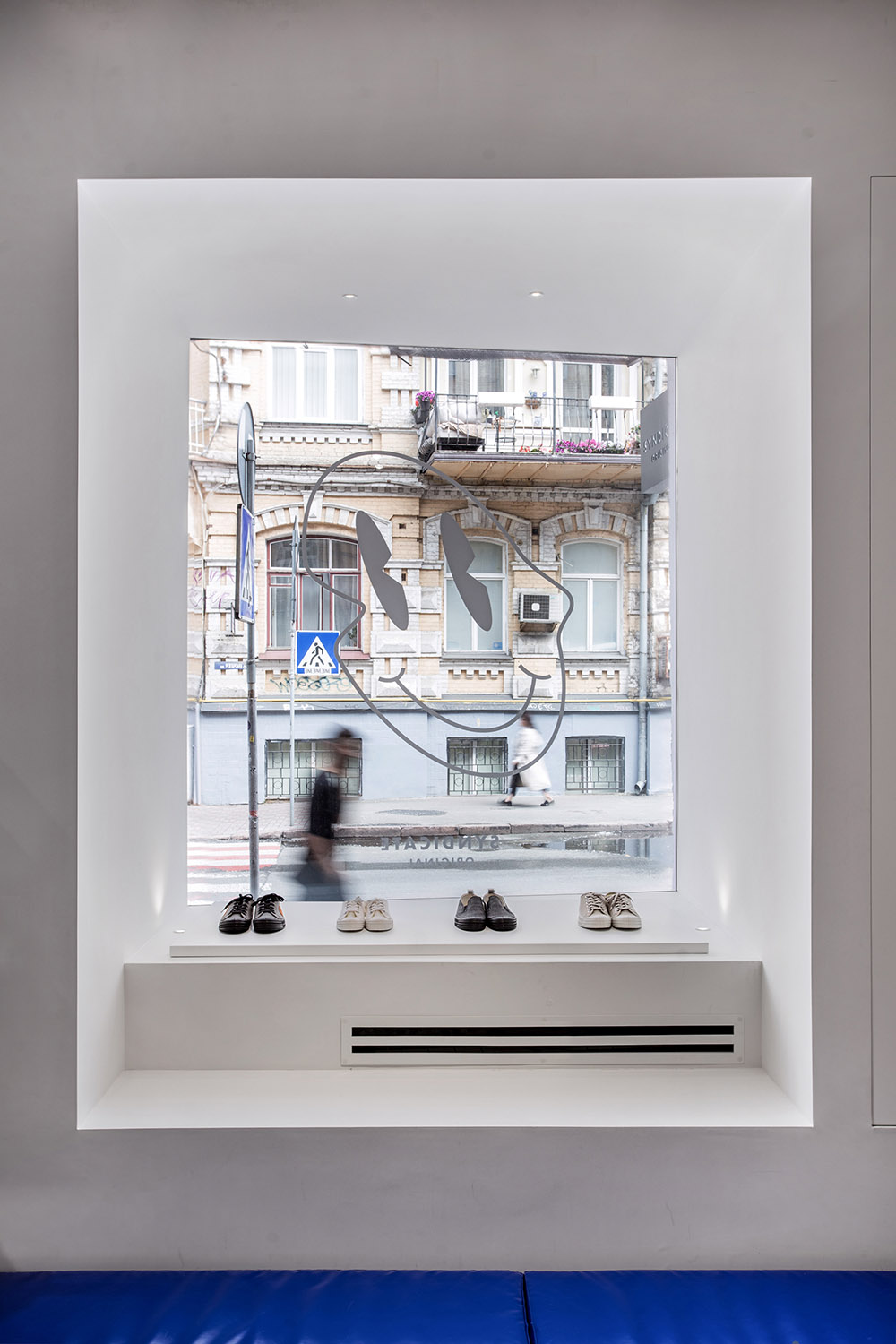 Sala de exposiciones y sastrería en Kiev. Formas simples en una planta histórica de geometría compleja