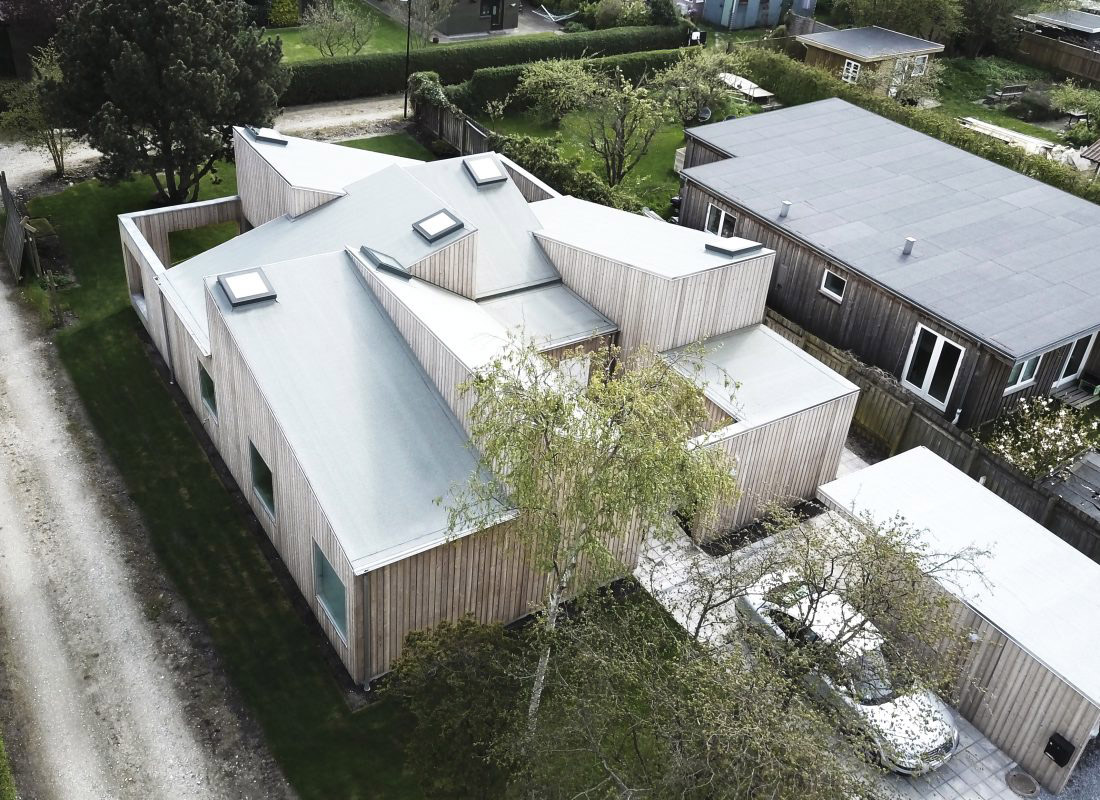 Sigurd Larsen da prioridad a la luz natural, elemento esencial en la construcción nórdica, en sus elecciones de diseño para Roof House. Consciente de los diferentes colores de la luz natural, azulados para la luz indirecta y más cálidos para la luz directa, intenta captarlos con los diferentes ángulos del techo, para mezclarlos y transformar el interior en una experiencia continuamente cambiante