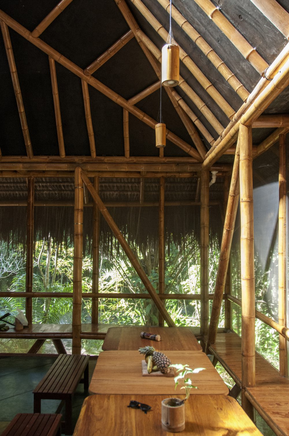 En un valle, en el centro de la isla de Morro de San Pablo, en Brasil, la jungla se convierte en espacio e invita a ser habitado de una manera diferente, ofreciendo la oportunidad de construir minimizando el impacto ambiental y proponiendo un marco pedagógico