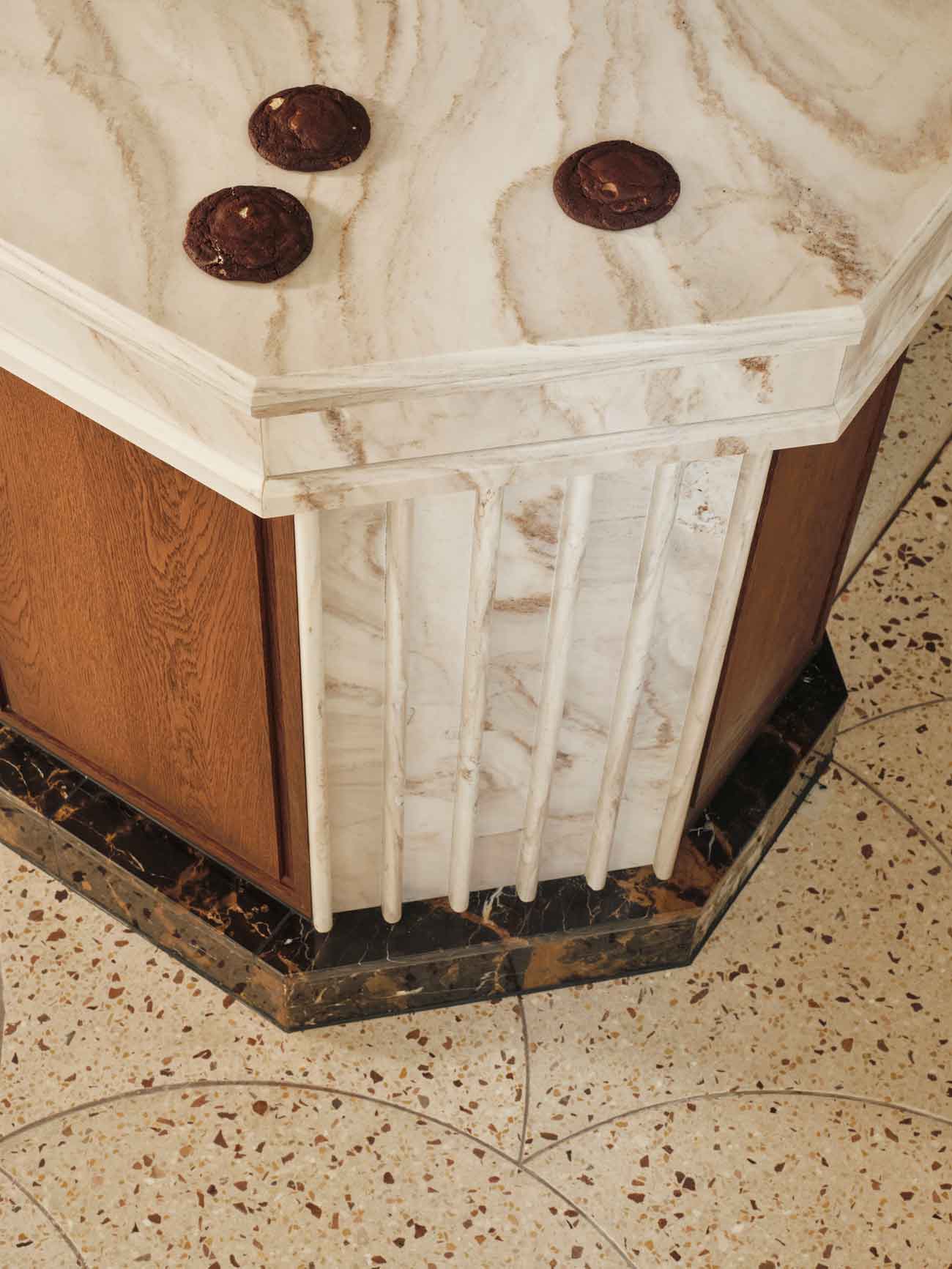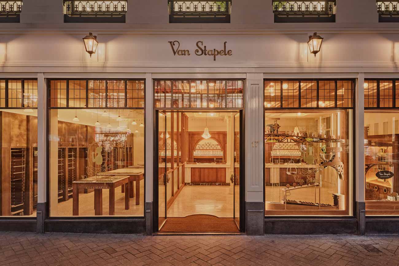 Desde 2013, Van Stapele hornea las mejores galletas de Ámsterdam: una única galleta de chocolate negro con un corazón de chocolate blanco. ¿Su secreto? Una receta exclusiva que ha convertido este dulce en un ícono de la ciudad, generando largas filas frente a la tienda todos los días. Inicialmente ubicada en un pequeño callejón en el centro, la popularidad de la pastelería requirió un traslado a un espacio más grande. Studio Modijefsky fue encargado de mantener la magia del local original, recreando su atmósfera en un entorno más amplio.
